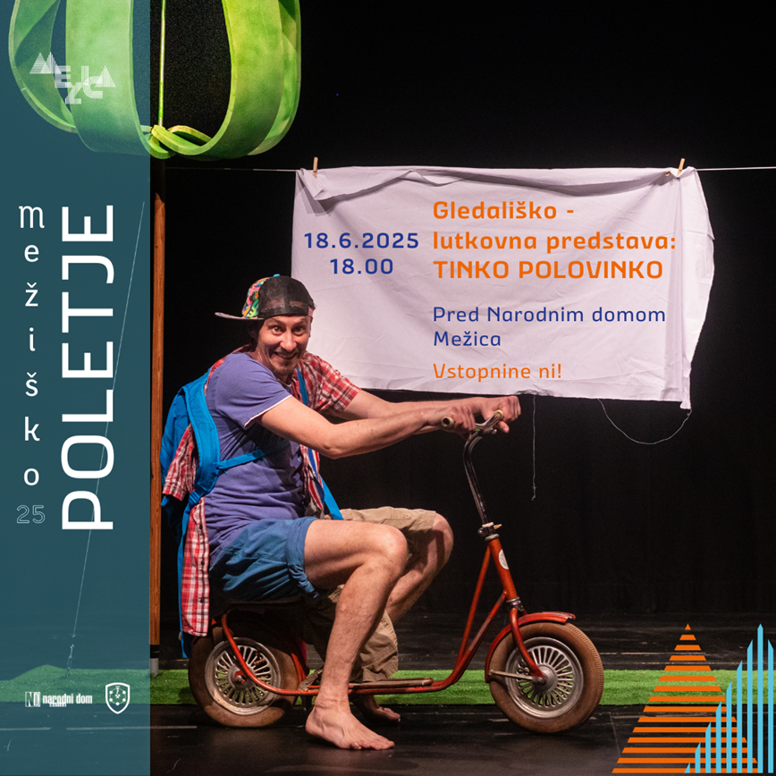V sredo, 18. junija 2025, vabijo vse navdušence nad gledališko-lutkovnimi predstavami, da se jim pridružijo ob 18. uri pred Narodnim domom, kjer si boste ogledali predstavo Tinko Polovinko.