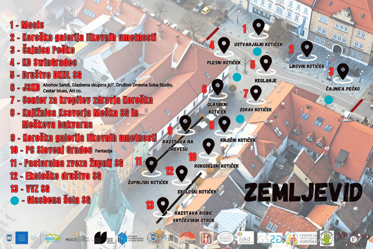 Dogodke sooblikujejo: Podjetniški center Slovenj Gradec, Koroška galerija likovnih umetnosti, Koroški pokrajinski muzej, Kulturni dom Slovenj Gradec, Knjižnica Ksaverja Meška Slovenj Gradec, Meškova bukvarna, Glasbena šola Slovenj Gradec, JSKD OI Slovenj Gradec, MOCIS, Pastoralna zveza župnij Slovenj Gradec, Vzgojno-varstveni zavod Slovenj Gradec, SPOTUR, GZ Koroška gospodarska zbornica in Društvo DKNL.