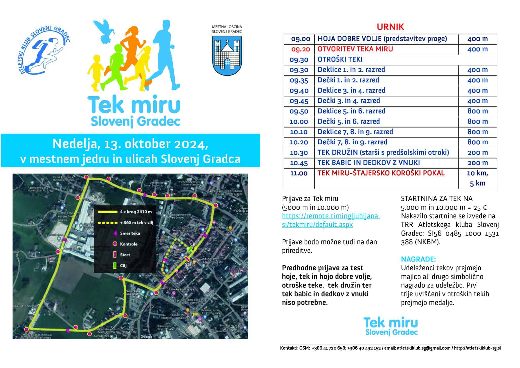 V nedeljo, 13. oktobra, Atletski klub Slovenj Gradec ob podpori Mestne občine Slovenj Gradec že tradicionalno organizira Tek miru, s katerim obeležujejo dan OZN. Ta sicer vsako leto poteka 24. oktobra, v spomin na dan, ko je začela veljati Ustanovna listina Organizacije združenih narodov.