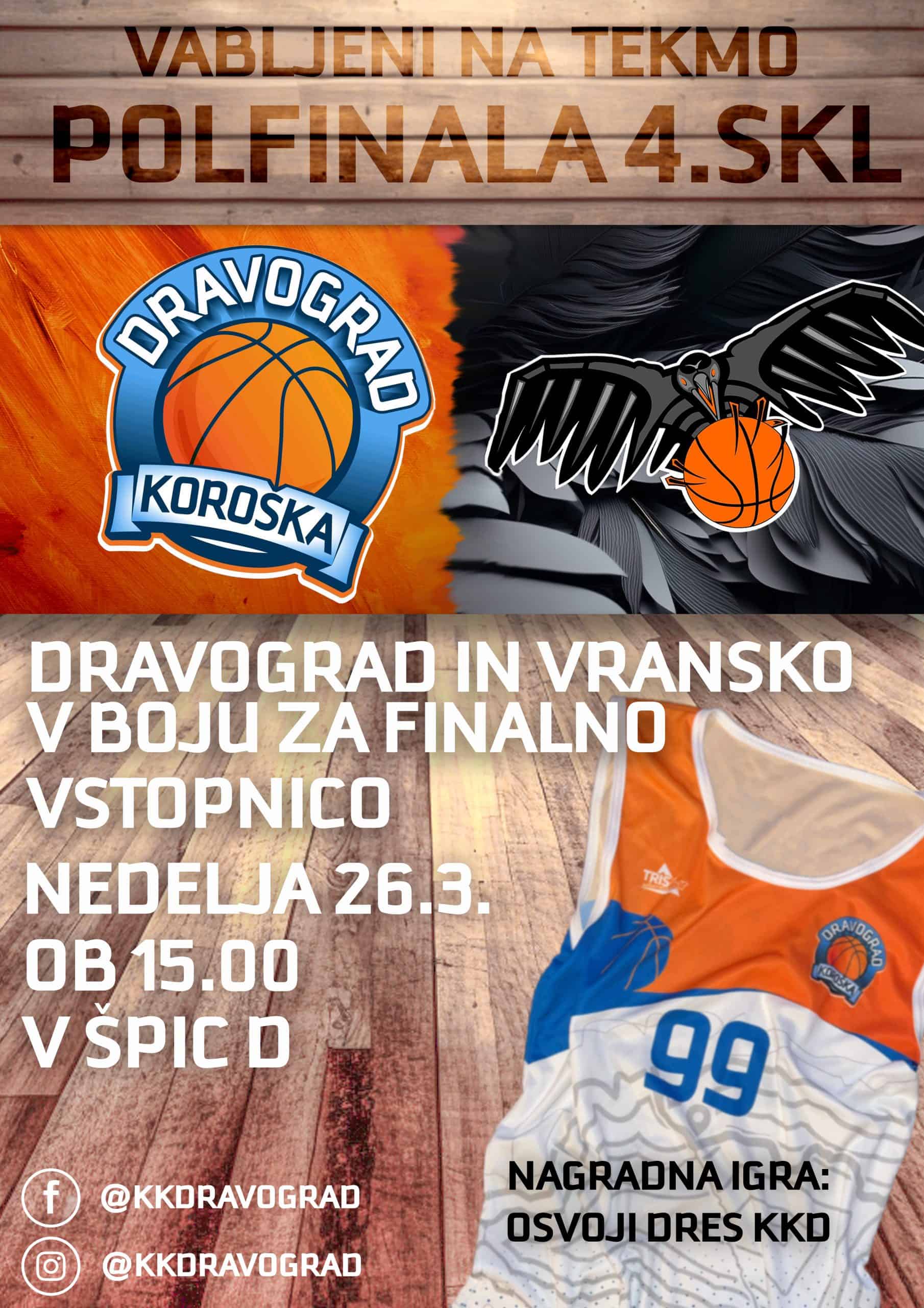 Mlada članska ekipa Dravograda Koroške v nedeljo, 26. marca, ob 15. uri igra odločilno, drugo tekmo polfinala 4. članske lige. Tekma bo potekala v športni dvorani Špic D Dravograd.