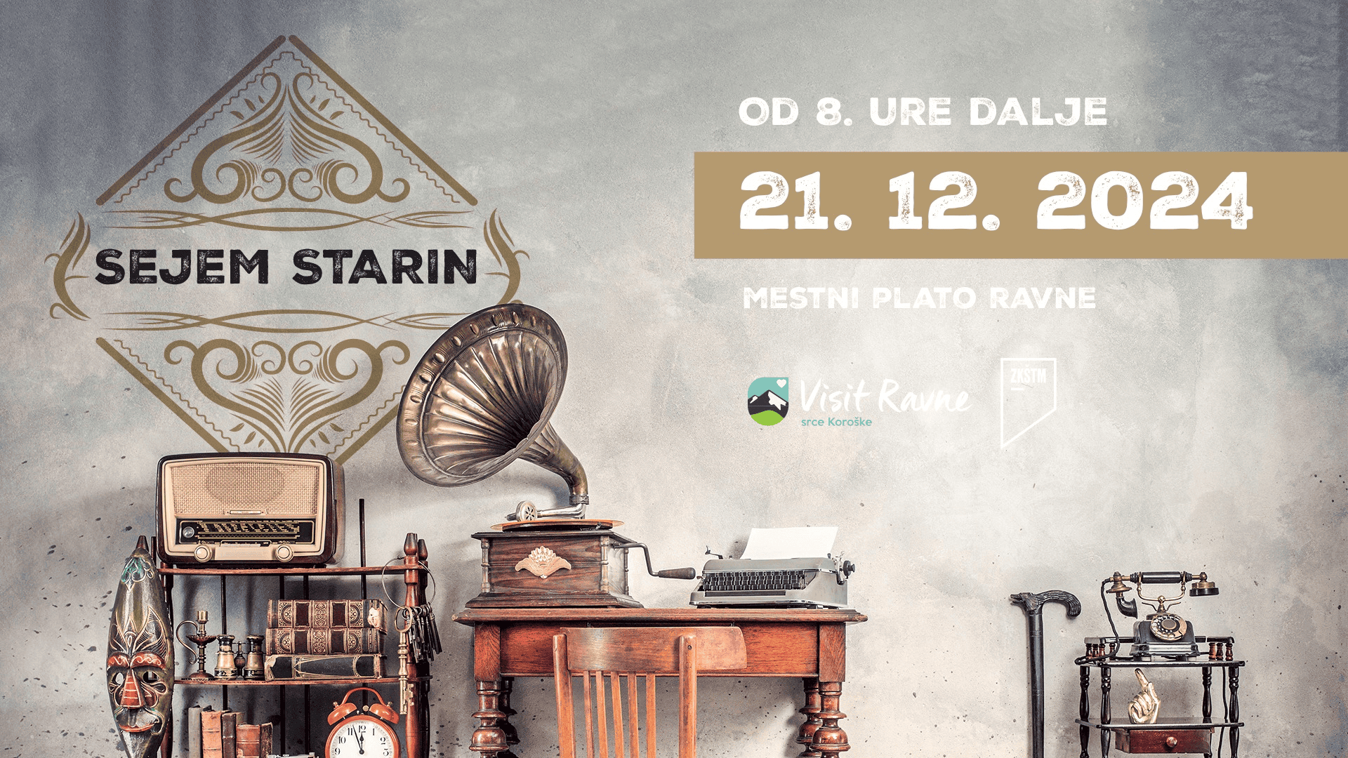 V soboto, 21. december 2024, od 9. ure dalje bo na mestnem platoju na Ravnah na Koroškem še zadnjič to leto potekal sejem starin. Vonj po starinah bo tako preplavil mestni plato.
