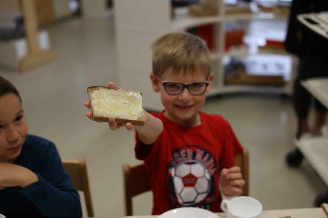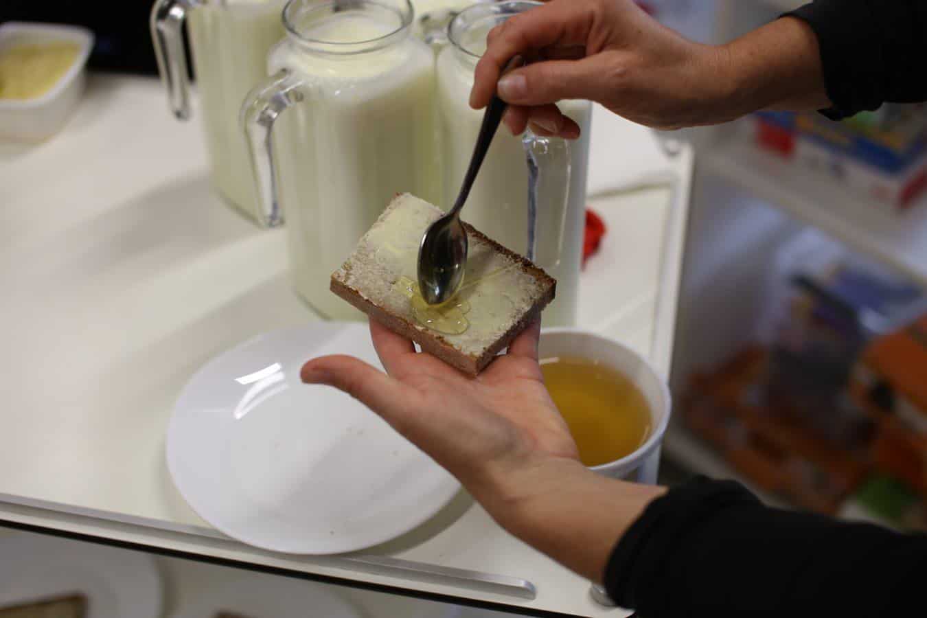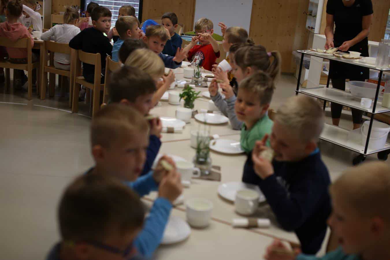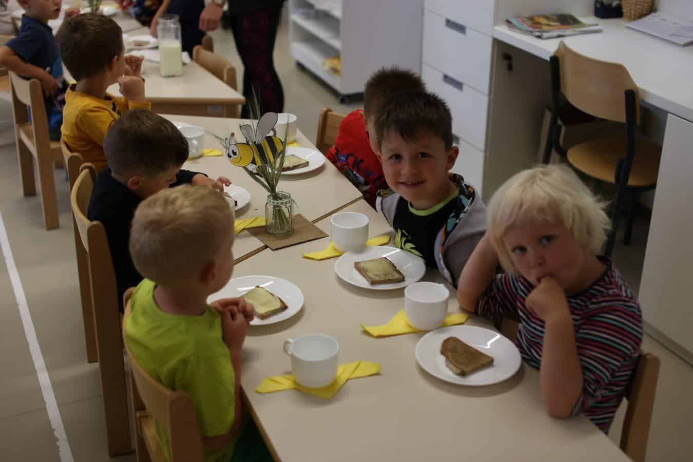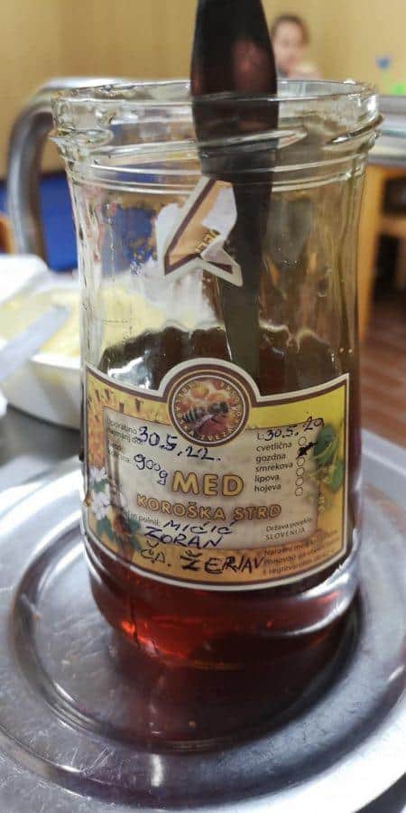 FOTOGALERIJA: Tako je zgledal današnji zajtrk podružnici OŠ Črna na Koroškem v Žerjavu, kjer so tradicijo začinili še kratkim prispevkom o čebelicah in medu. FOTO: Facebook KS Žerjav