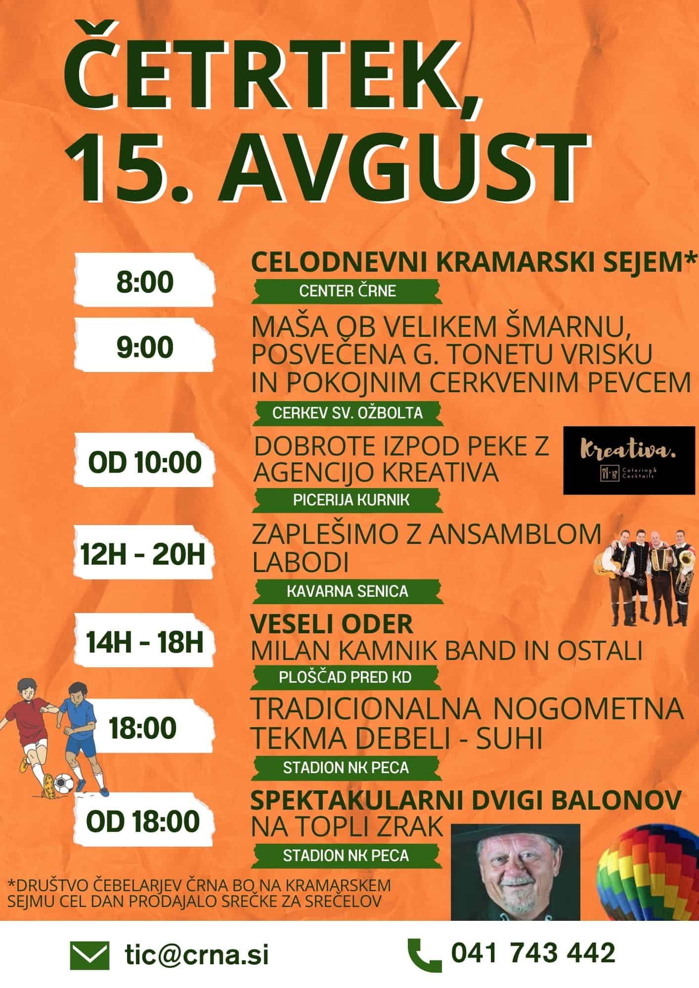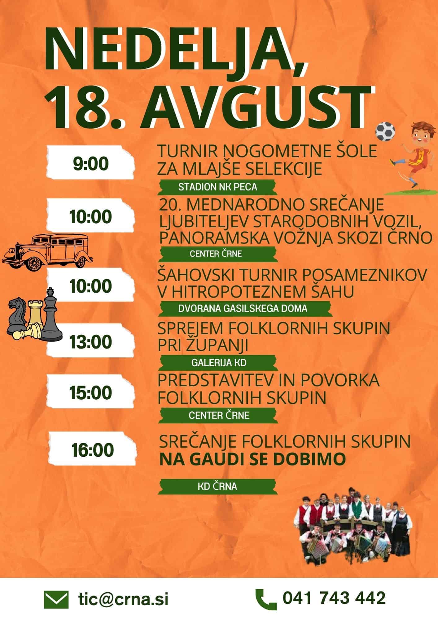 - 15.00 uri predstavitev in povorka folklornih skupin v centru Črne
