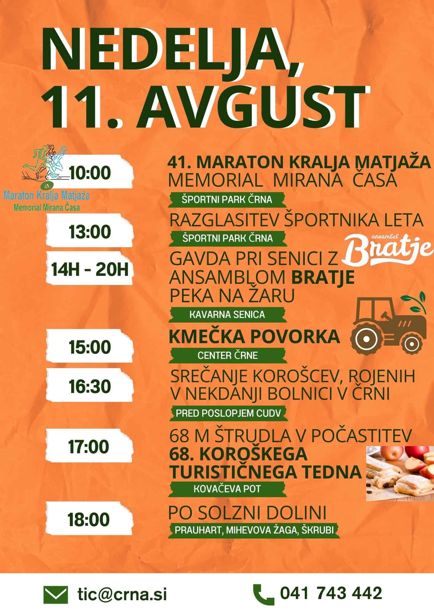 - 10.00 uri 41. Maraton Kralja Matjaža, Memorial Mirana Časa v Športnem parku Črna na Koroškem