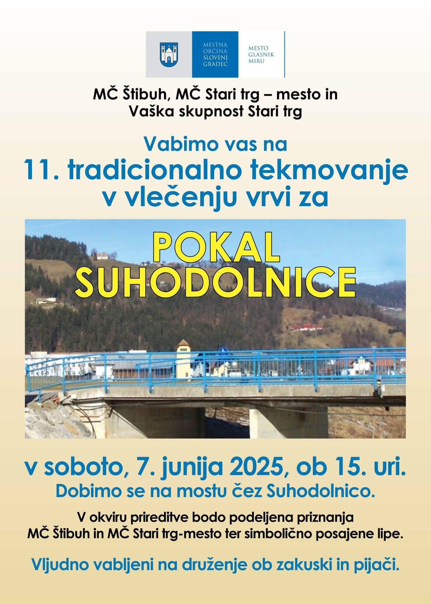 Mestna četrt Štibuh, Mestna četrt Stari trg – mesto in Vaška skupnost Stari trg, vas ob podpori Mestne občine Slovenj Gradec vabijo na že 11. tradicionalno tekmovanje v vlečenju vrvi za pokal Suhodolnice.