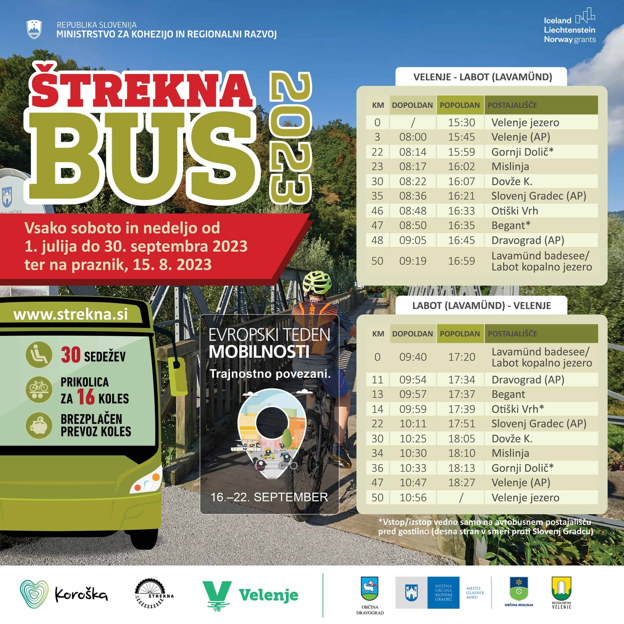 Štrekna bus bo tudi letos vozil enako kot lansko sezono - vsak vikend od julija do septembra ter na praznik, 15. avgusta 2023. Tudi vozni red ostaja enak.