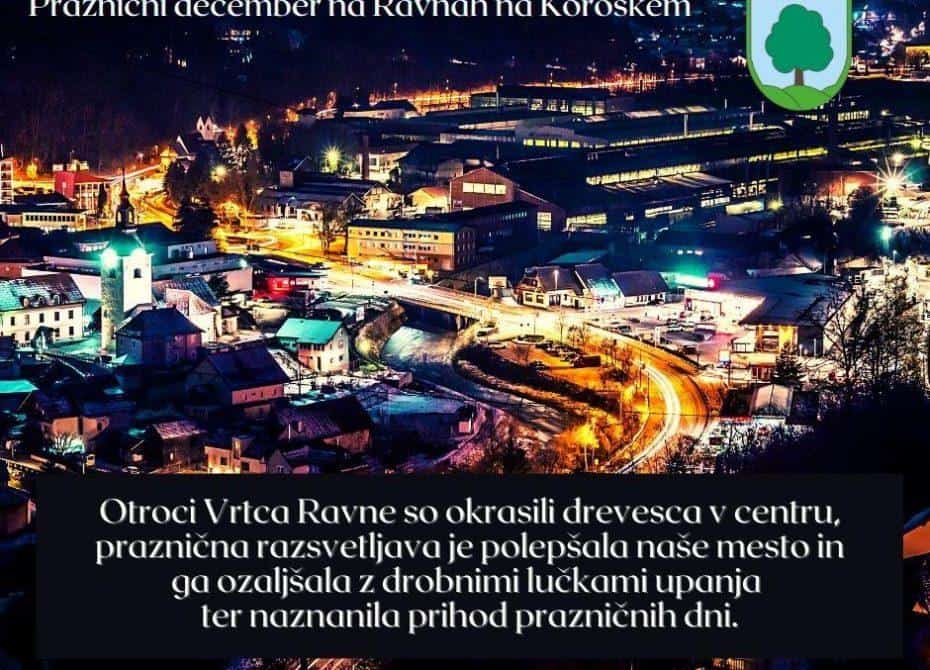 Praznična razsvetljava, z remontom izrabljenih lučk, v obsegu iz preteklih let, je nadgrajena z nekaj dodatnimi LED lučkami, v obliki snežink, ki so po novem nameščene tudi na Strojni; in lučk v obliki ledenih sveč, ki krasijo vidnejše listavce v mestu (pri vstopu v mesto – pri vratarnici Železarne Ravne, pri Gasilskem domu, pri centru Tuš, v Kotljah). Za krasitev manjših 35 drevesc (brez in smrek) na mestnem platoju so iz recikliranih materialov poskrbeli otroci Vrtca Ravne, stari 4 – 6 let, ki so odpadno embalažo – konzerve spremenili v snežake in drevesca, v sklopu svojih prazničnih priprav, tudi s pomočjo vzgojiteljic in mentoric okrasili. Otroci so skupaj z mentoricami izdelali preko 100 snežakov.
