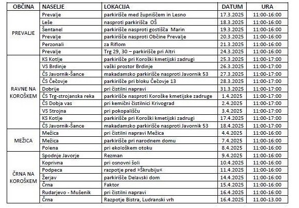 Kocerod obvešča občane občin: Prevalje, Ravne na Koroškem, Mežica in Črna na Koroškem, da se bo akcija odvoza kosovnih odpadkov izvajala po sledečem razporedu: