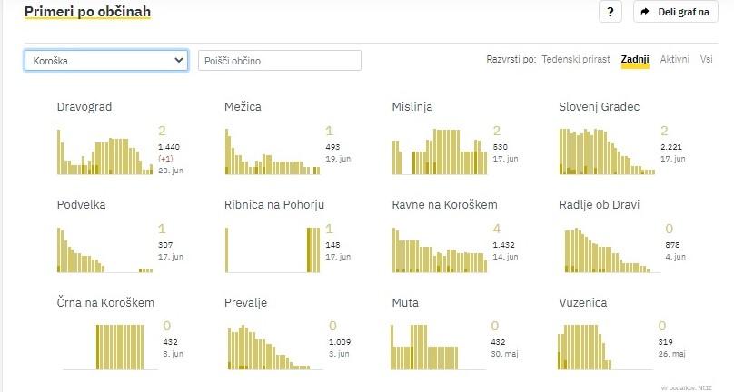 Na Koroškem so v zadnjih sedmih dneh zabeležili 7 novih okužb s koronavirusom. Sedemdnevno povprečje v regiji znaša 1.