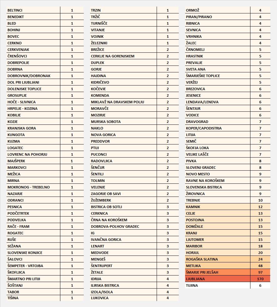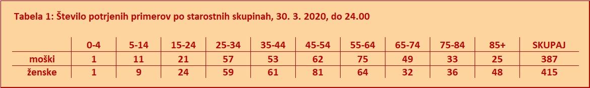 Po podatkih NIJZ je bilo do 30.3.2020 do 24. ure opravljenih 22.474 testiranj, od tega je bilo 814 pozitivnih testov.