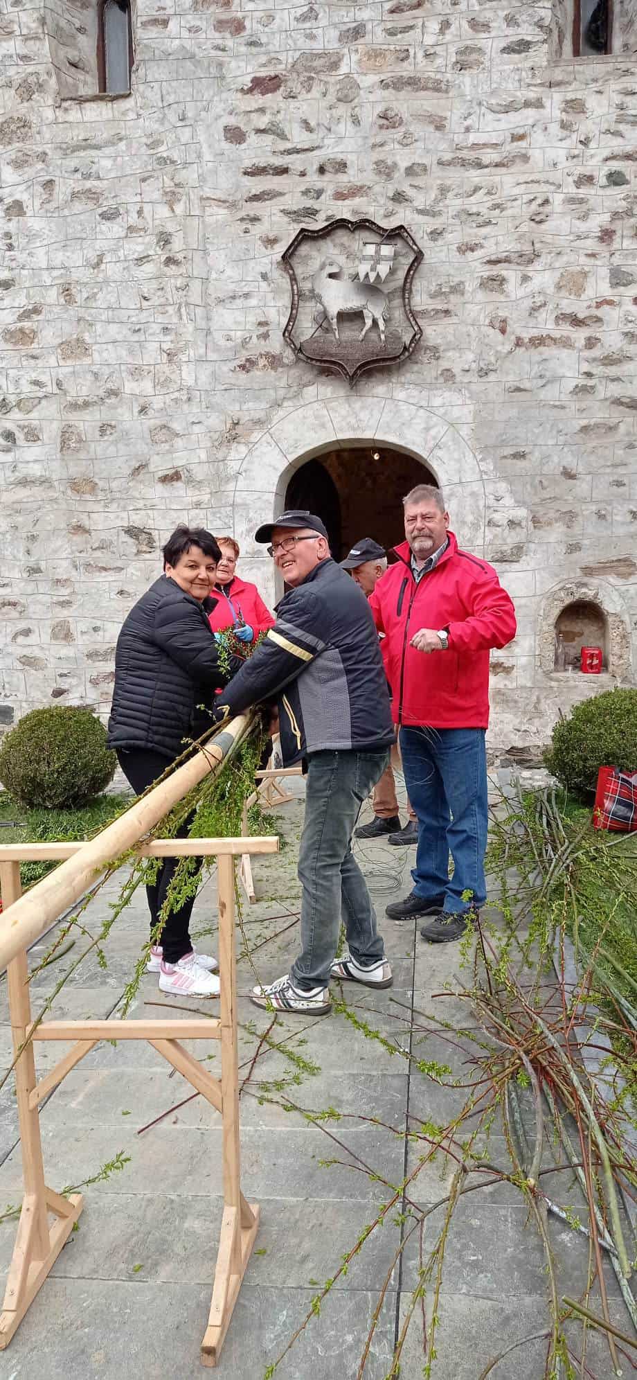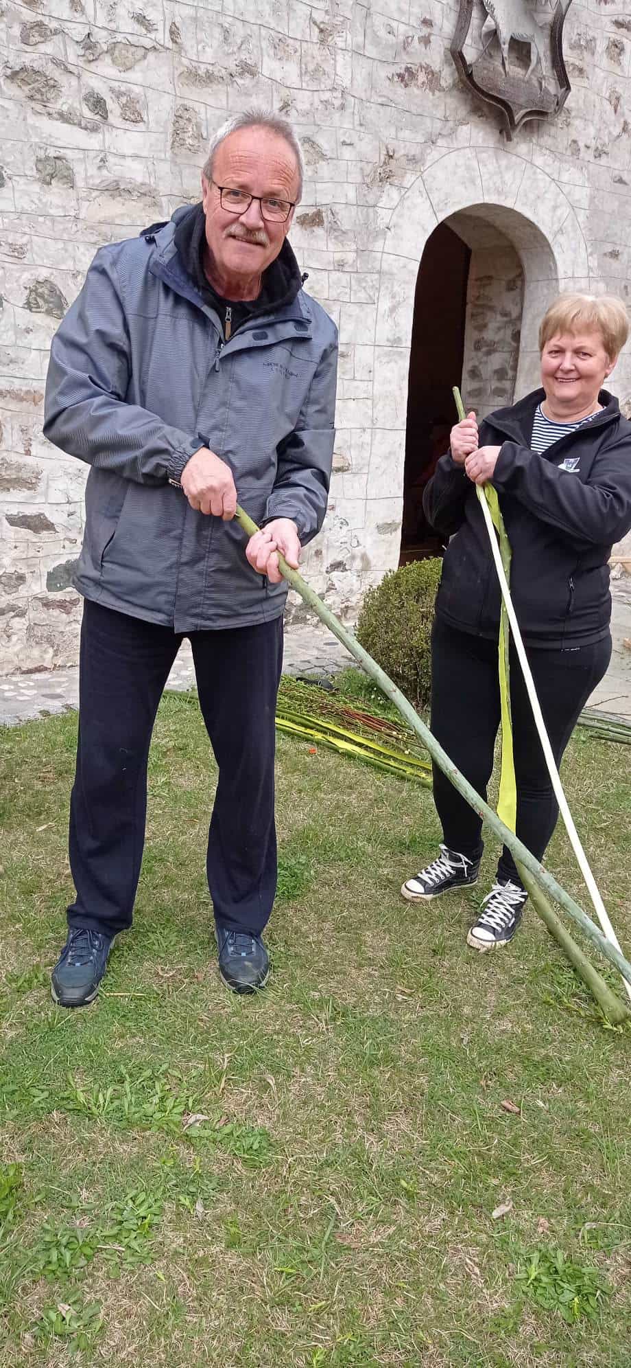 Članice in člani Turističnega društva Dravograd so v soboto, 1.aprila pred cerkvijo Sv. Vida - tako kot že vrsto let do sedaj - tradicionalno izdelali velik, letos kar 11,40 m dolg cvetnonedeljski snop.