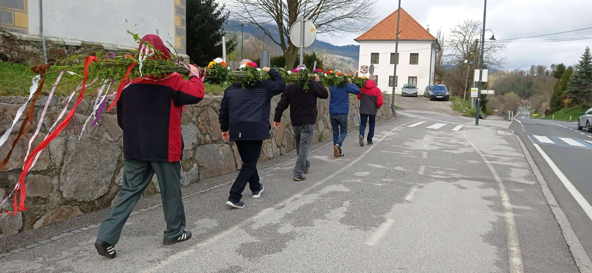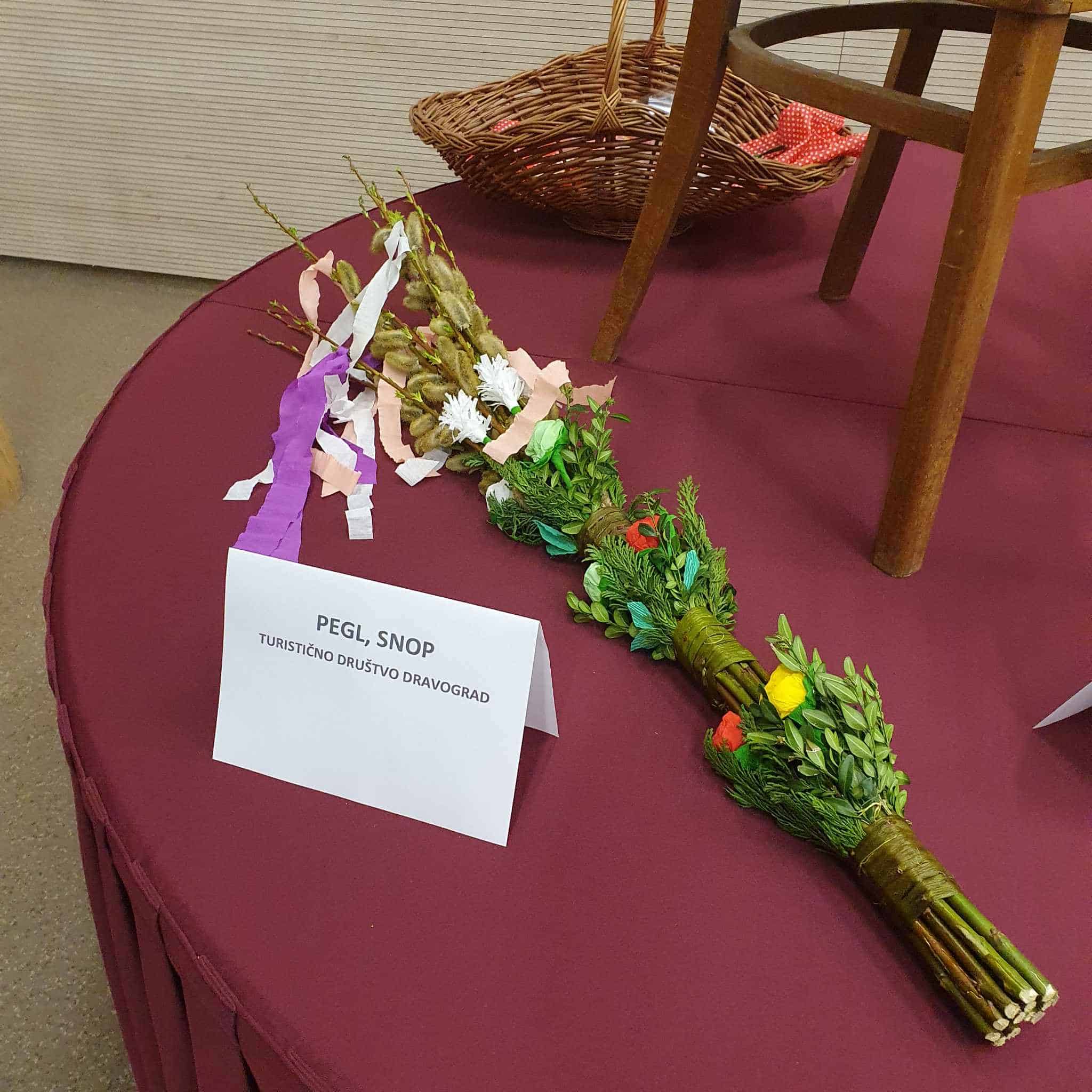 Ta izjemen snop so ustvarili iz lokalnega zelenega rastlinja, okrasili pa so ga z vrbovimi trakovi in rožicami iz krep papirja, ki so jih spretno izdelale članice društva. V nedeljo zjutraj so ga s ponosom odnesli pred farno cerkev Sv. Janeza Evangelista, kjer je bil blagoslovljen.