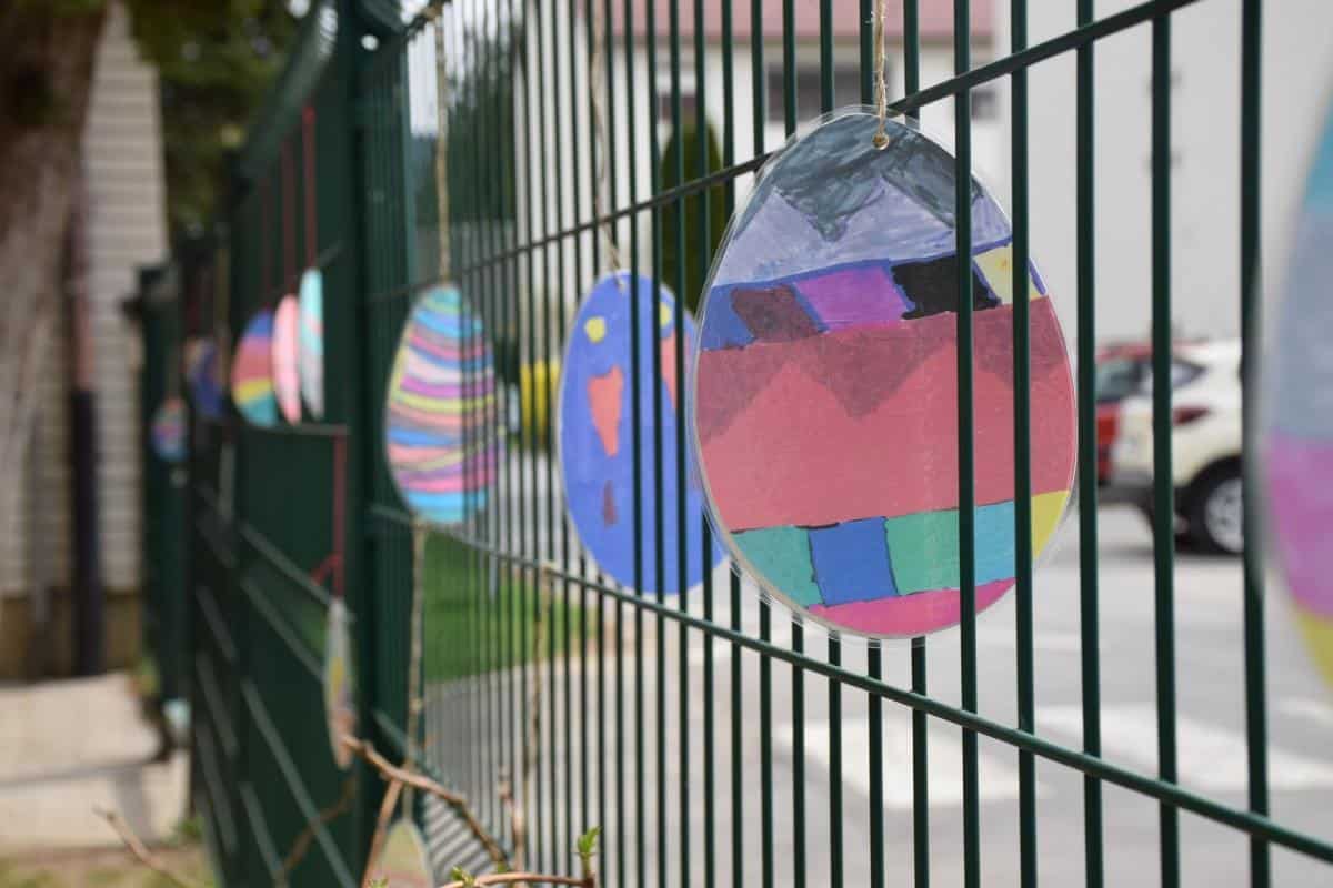Velikonočni prazniki so popoln čas za pomladno okrasitev s tipičnimi motivi pomladi in novega življenja. Tako so učenke in učenci ustvarili čudovite darilne vrečke, lesene zabojčke z velikonočnimi jajčki in pisane kartonaste pirhe, s katerimi so okrasili šolsko okolico. Tako lahko na sprehodu mimo njihove šole pokukate čez ograjo in pogledate, kaj vse so ustvarili.