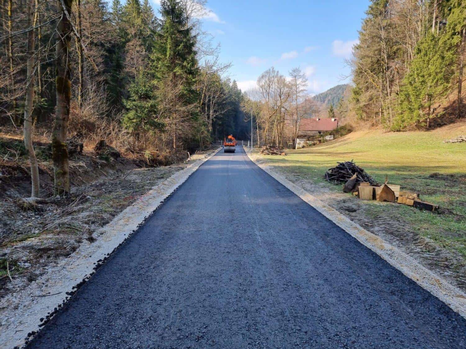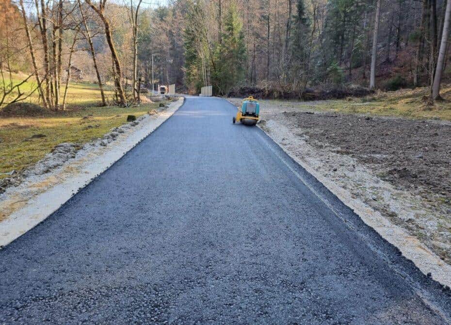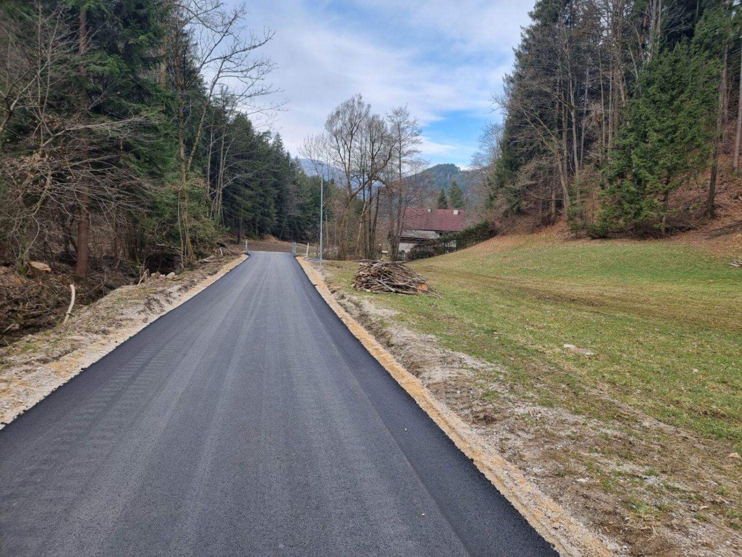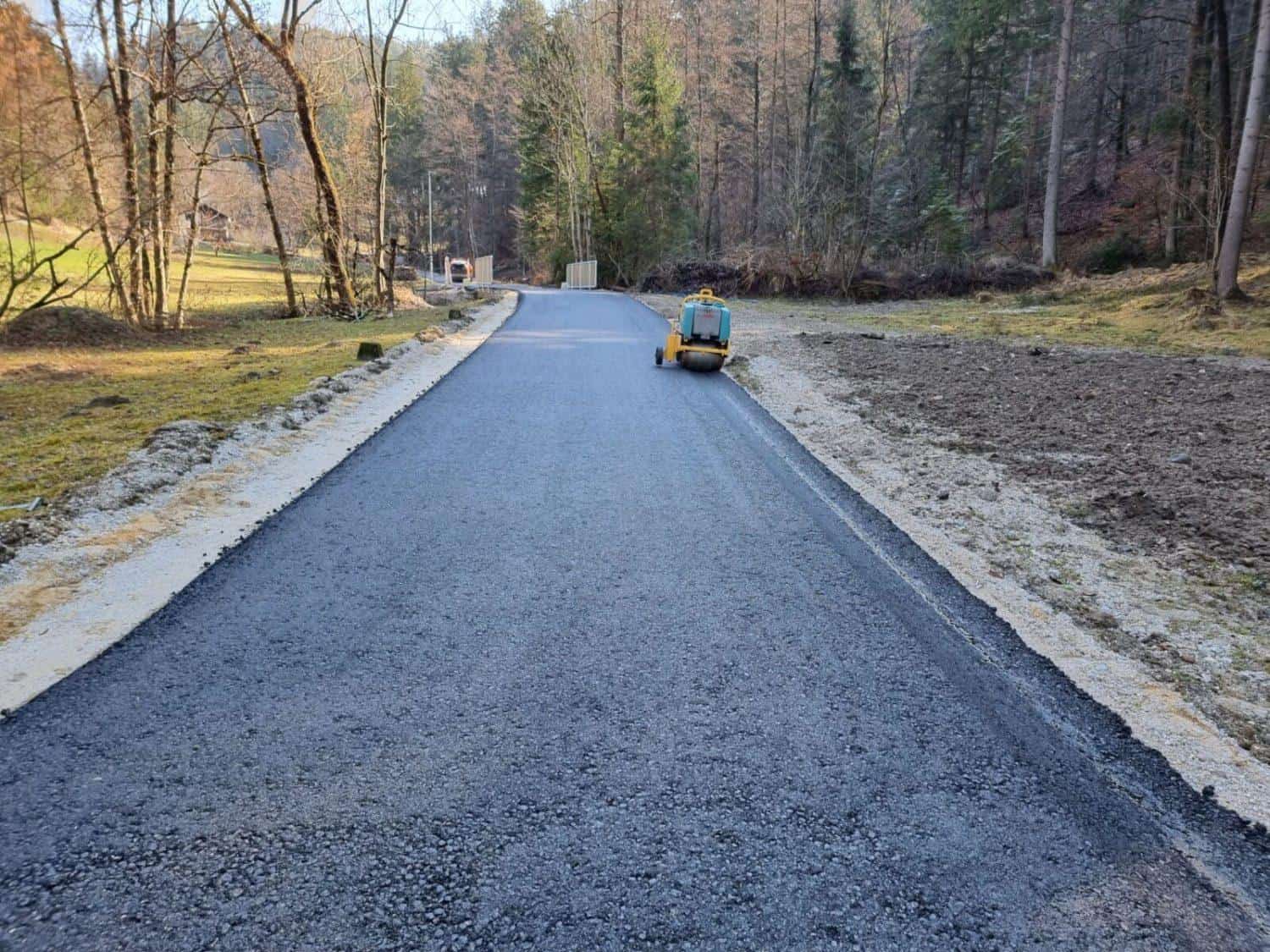 Predmet izvedbe je bil asfaltiranje ceste v dolžini 607 m.