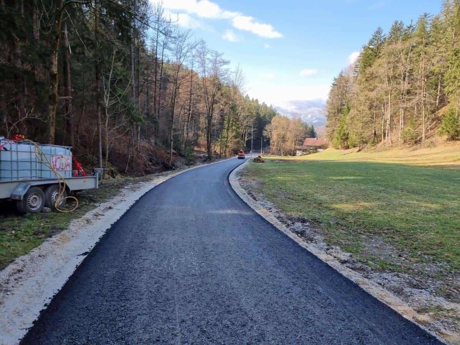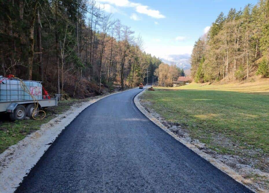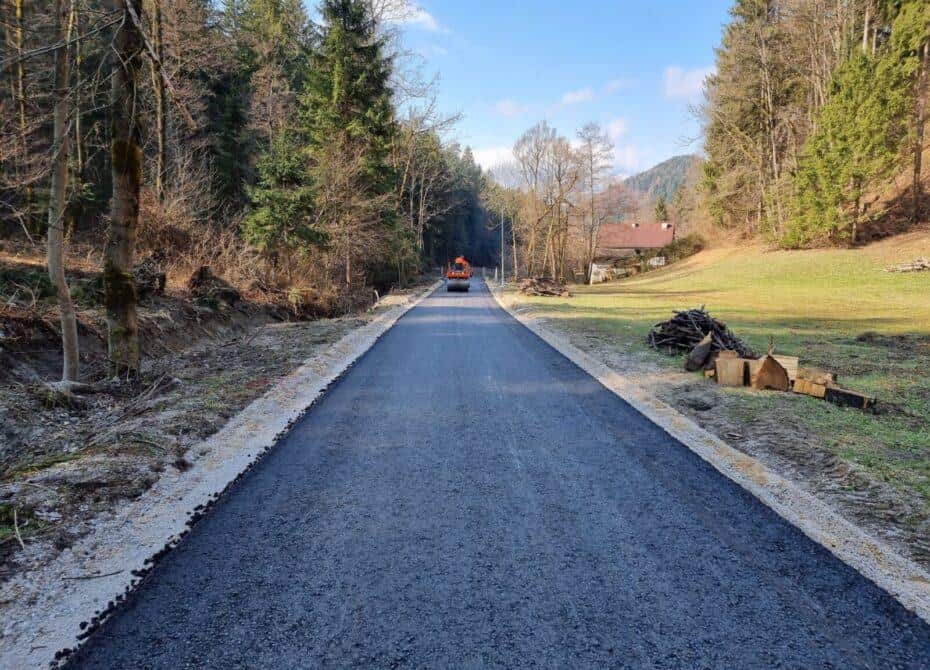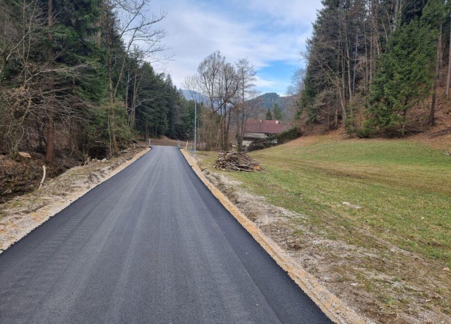 Predmet izvedbe je bil asfaltiranje ceste v dolžini 607 m.