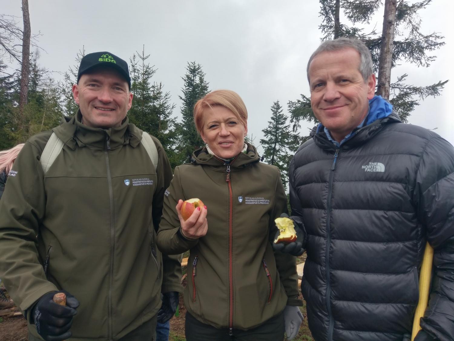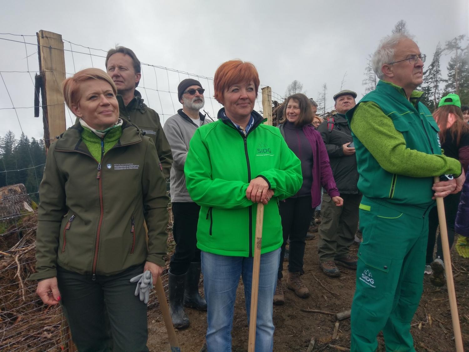 V Lovrencu na Pohorju je sadila tudi ministrica za kmetijstvo, gozdarstvo in prehrano dr. Aleksandra Pivec z ekipo. »Takšne akcije so dober način za ozaveščanje o pomenu gozdov. Še posebej sem vesela, da se je akciji pogozdovanja združilo toliko različnih institucij in da tukaj vidimo takšno medgeneracijsko pestrost,« je zbrane nagovorila ministrica in izrazila željo, da bi tudi zasebni lastniki v čim večjem številu pristopili k obnovi poškodovanih gozdov.