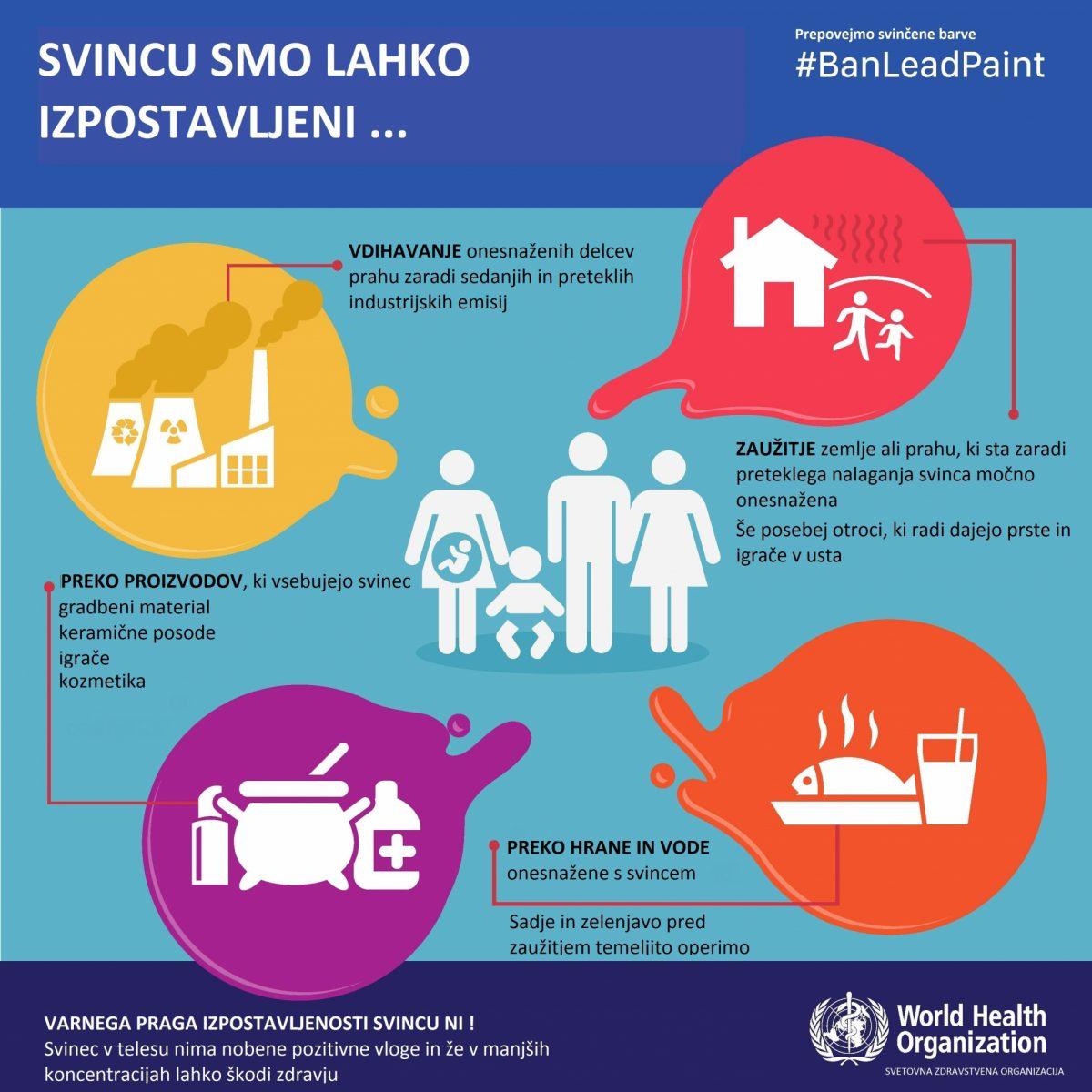 "To predstavlja trenutni in prihodnji vir izpostavljenosti svincu otrok in zaposlenih v industriji barv. Globalno zavezništvo za odpravo svinčene barve, ki deluje v okviru mednarodnega programa za kemijsko varnost Svetovne zdravstvene organizacije (SZO), letos poziva k pospešitvi opuščanja svinčene barve v svetu. To je dosegljivo s sprejemanjem ustreznih predpisov in izvajanjem nadzora nad njihovim izvajanjem," sporoča NIJZ.