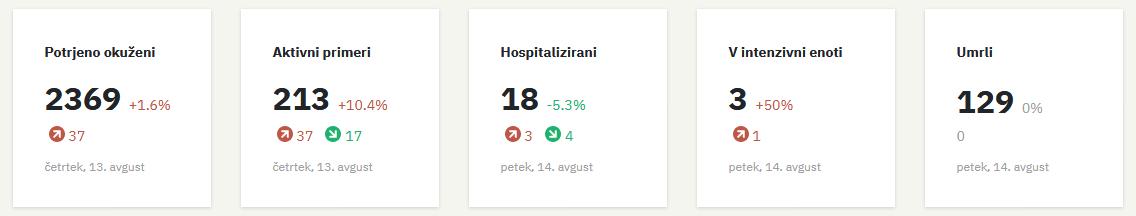 Trend obolelosti s koronavirusom v Sloveniji na dan 13. 8. 2020 (00:00-24:00):