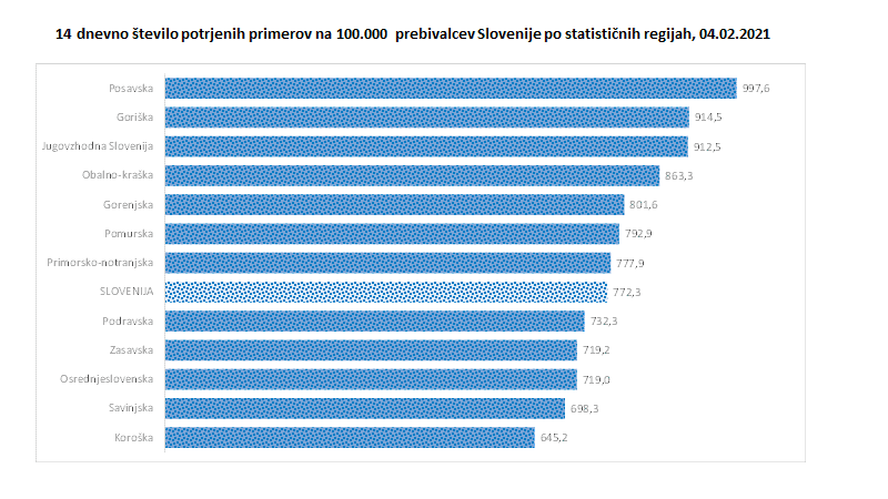 14 dnevna in 7 dnevna incidenca - podatki kažejo, da razlike med regijami niso več velike. FOTO: Vlada RS