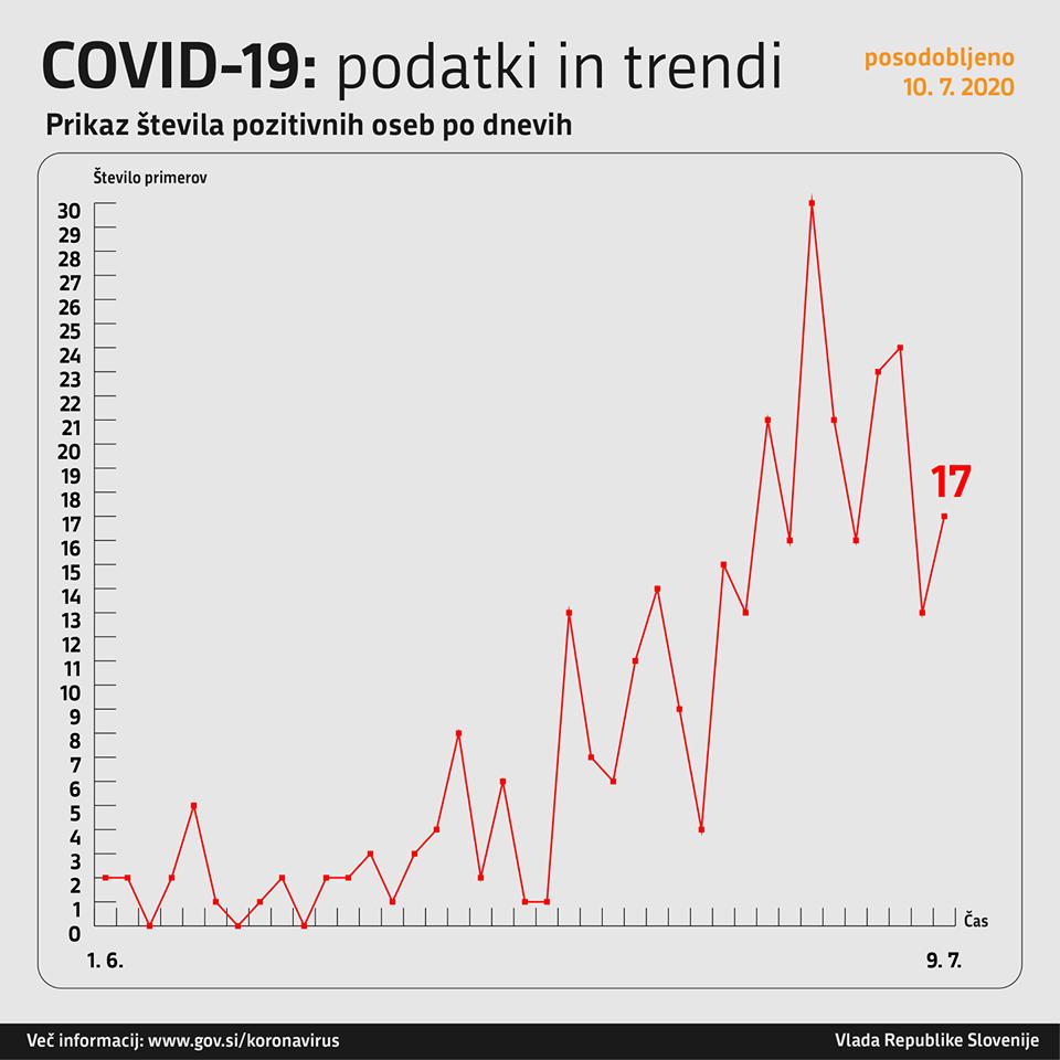 Trend obolelosti s koronavirusom v Sloveniji na dan 9.7.2020 (00:00-24:00):