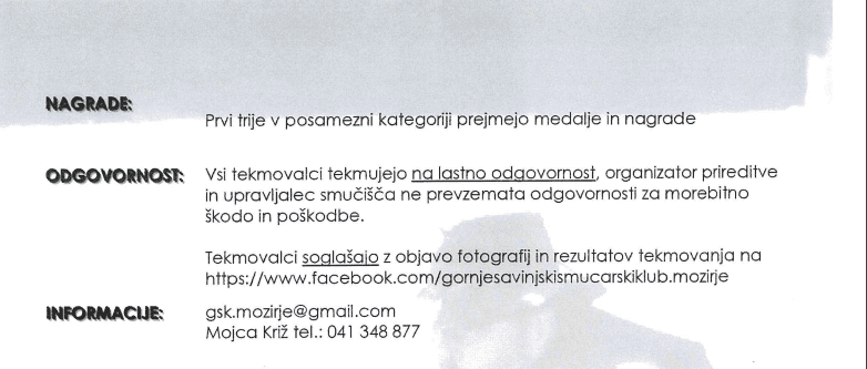 Pogoj za udeležbo na tekmi je stara oprema - starodobna oblačila, smuči in palice ter čevlji, ki ustrezajo tej stari smučarski opravi. Prijava na tekmo so možne do četrtka, 9. 3. 2023 do 19.00 ure na e-mail: gsk.mozirje@gmail.com.