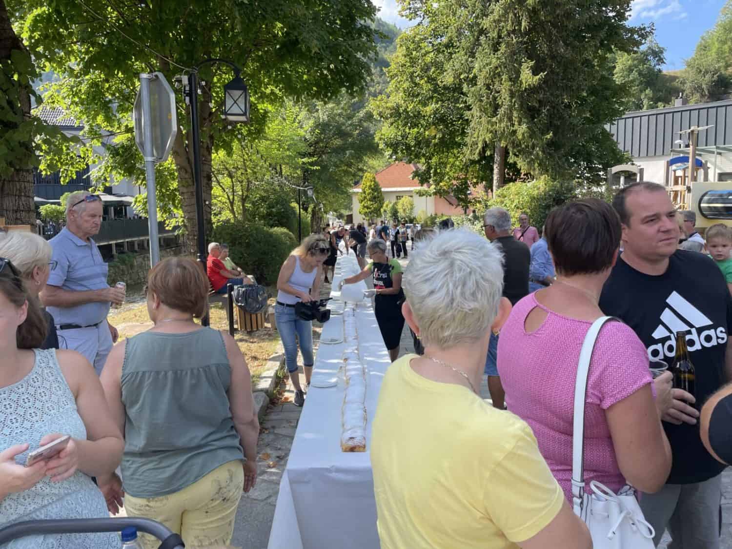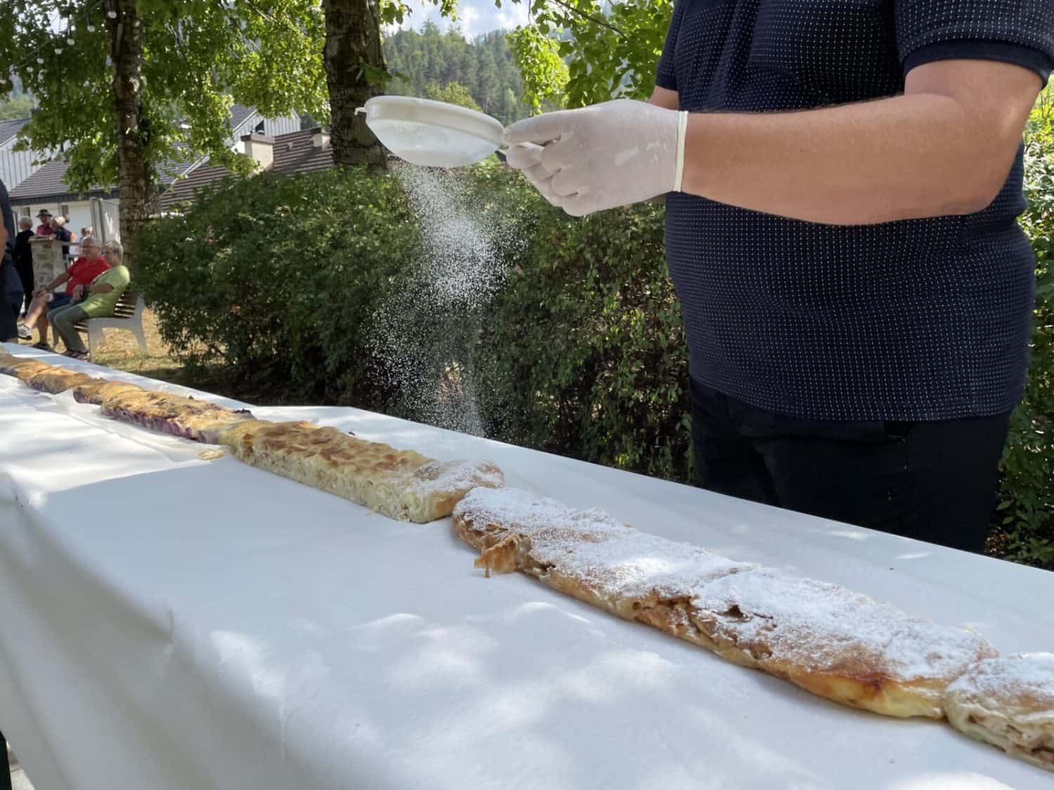 Po predstavitvi pa so se vsi obiskovalci lahko poskusili štrudelj, ki so ga spekli v KS Žerjav in ga posvetili 66. Turističnemu tednu. V dolžino je tako meril 66 metrov, zanj pa so Sonja, Zorka, Mojca, Sanja, Krista, Milena, Katja, Jasmina, Marjeta, Marjan, Joži in Milan porabili 60 kg moke, 50 kg skute, 25 kislih smetan, 20 kg borovnic, 35 kg jabolk, 10 kg sladkorja ...