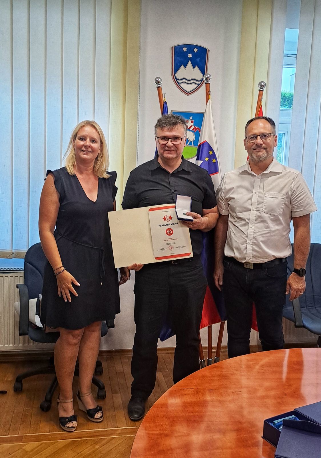 Najvišje priznanje za 90-krat darovano kri pa je prejel g. Miran Perovnik, g. župan Tone Preksavec pa mu je podelil tudi grb Občine Dravograd.