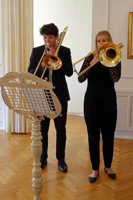 Slavnostno sejo sta z glasbo popestrila Ana Knez in Aljaž Stošič na pozavni.