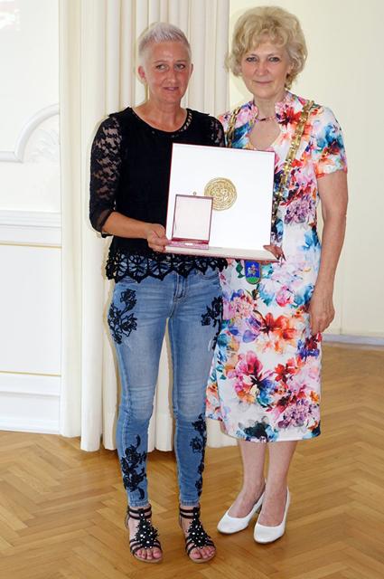 Zlati grb, ki ga podeljuje županja kot znak spoštovanja, pozornosti in v zahvalo za pomoč pri razvoju občine so prejeli Franc Veršnik, Ema Švab, Ljudski pevci Ojstrica in podjetje Kovine Goršek, predelava kovin d.o.o..