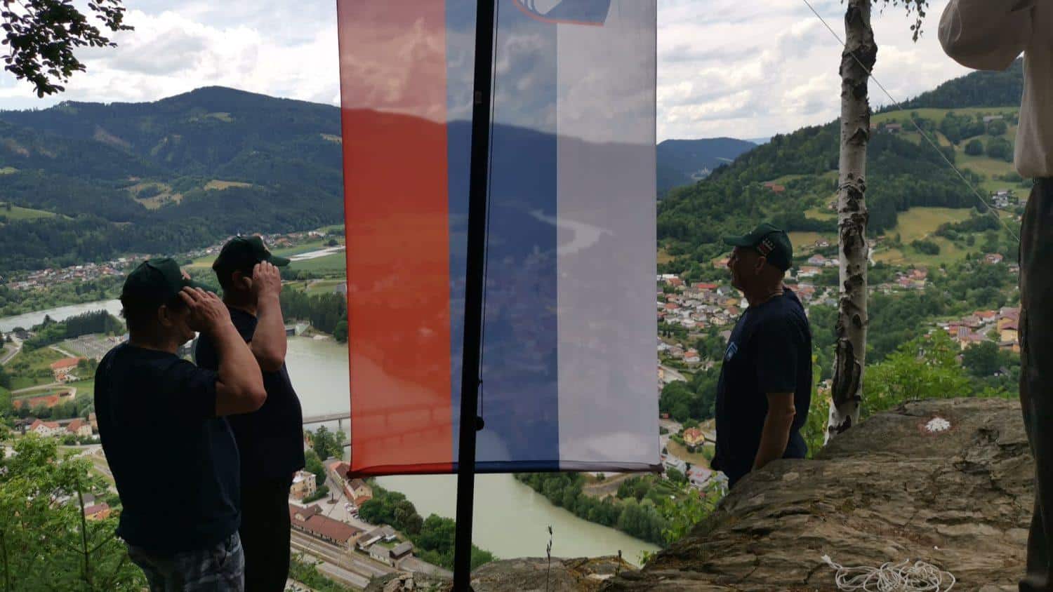 Udeleženci dogodka so najprej prisluhnili krajši slovesnosti s kulturnim programom, nakar so se na pobudo ZČS Dravograd podali po gozdni poti do znamenite Dravograjske skale, kjer so zastavo dvignili isti fantje (g. Hribernik, g. Mori in g. Prša), ki so to pogumno dejanje naredili tudi točno pred 30. leti, v času, ko so potekali boji za svobodno Slovenijo.