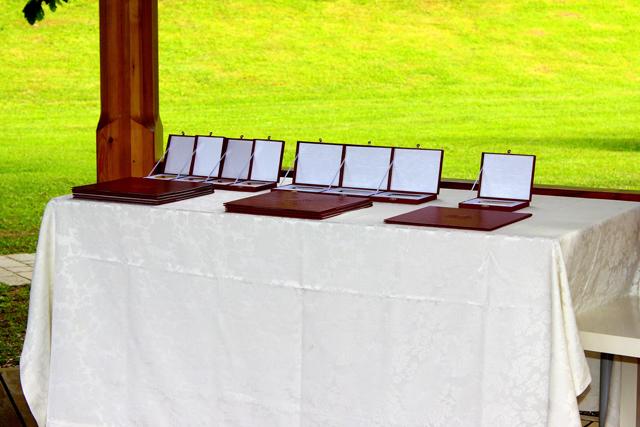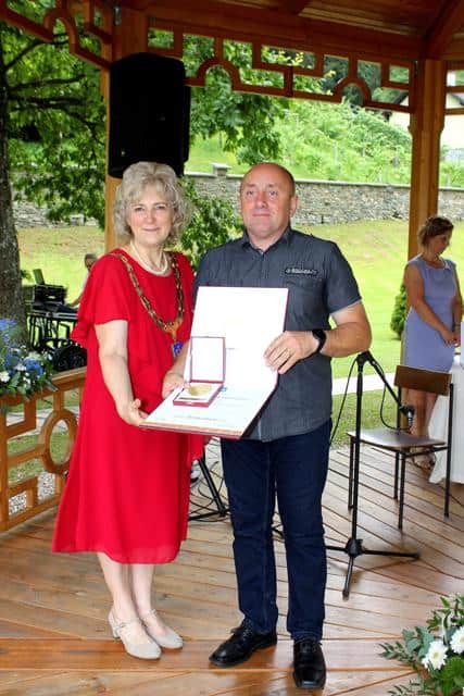 Po nagovoru županje Marijane Cigala je le ta najprej podelila zlate grbe, ki kot znak spoštovanja, pozornosti in v zahvalo za pomoč pri razvoju občine ter za prispevek pri uveljavljanju njenega ugleda.