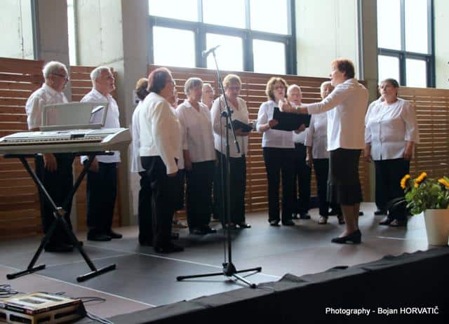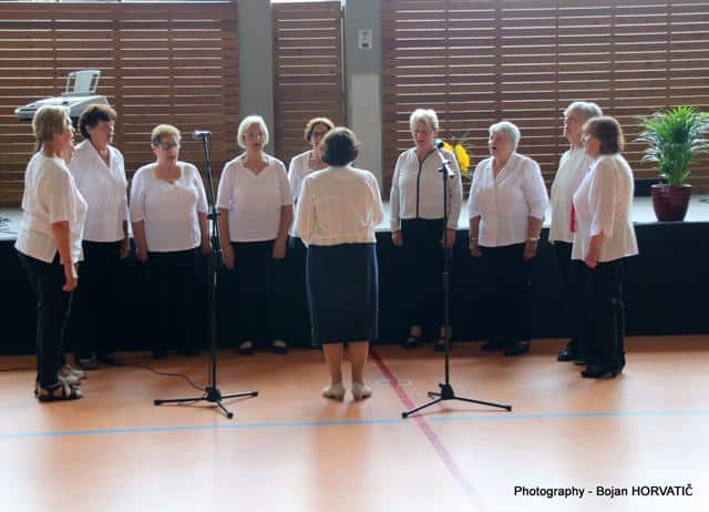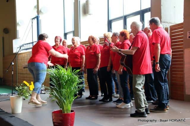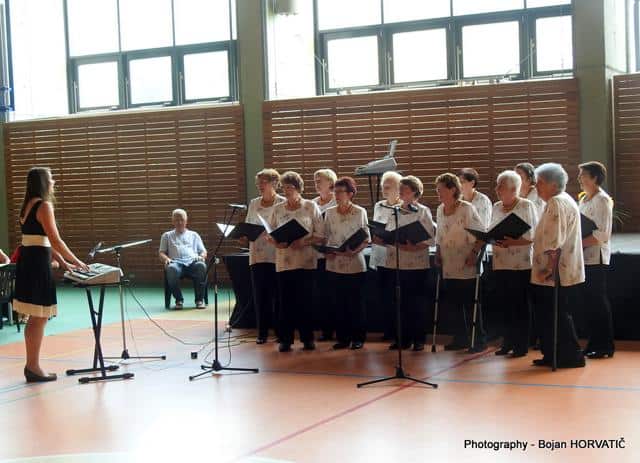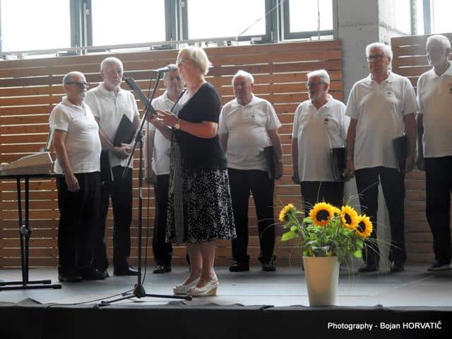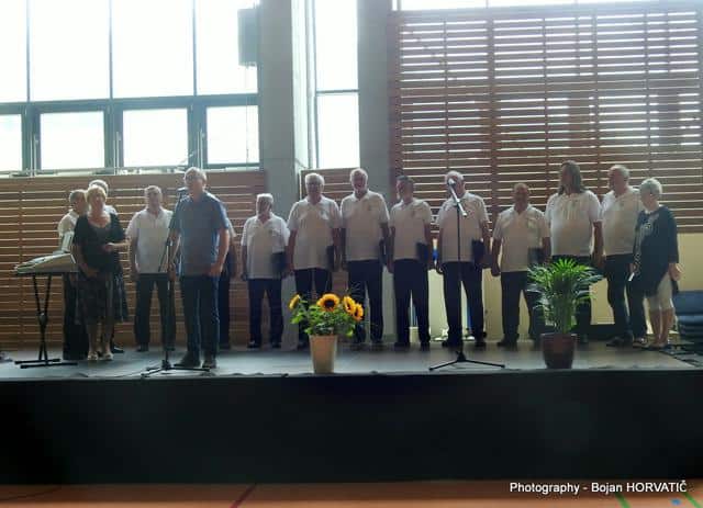 Ob 10. uri pa je v dvorani zadonela pesem. Pevce je nagovoril in jim čestital za 20. srečanje g. Robert Preglau, vodja območne enote JSKD. Zapeli so pevci in pevke sedmih zborov.