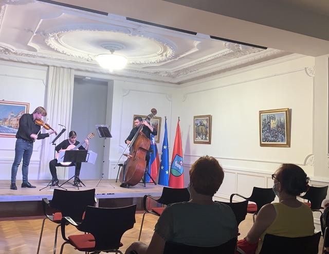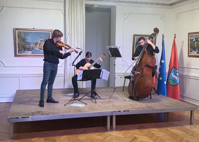 Predstavil se je Libertrio v zasedbi Katja Porovne Silič – kitara, Matjaž Porovne – violina in Petar Brčarević – kontrabas. Koncert je z izbrano besedo povezal Dejan Pevčević.