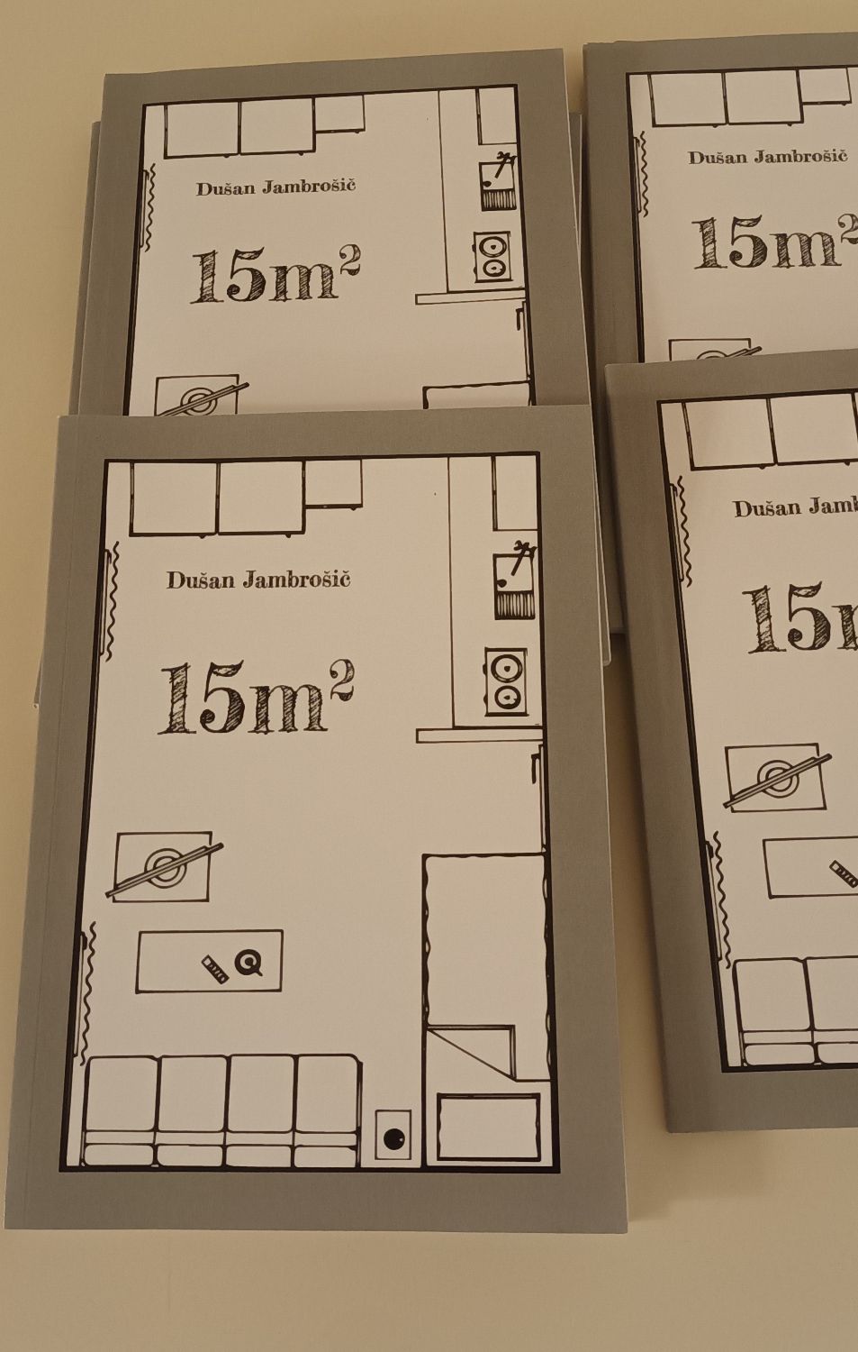 Dušan je najprej predstavil svojo osebno zgodbo od rojstva pa vse do danes. Knjiga 15m2 opisuje del njegovega življenja, ko je tri leta živel kot podnajemnik v majhni sobi v izmeri 15m2. Živeti na tako majhnem prostoru ni enostavno, vendar če človek nima za najemnino večjega prostora se tudi tako da shajati. Ker je si je moral kopalnico deliti s starejšo gospo je prihajalo do raznih prigod, ki jih avtor tudi opisuje v knjigi.