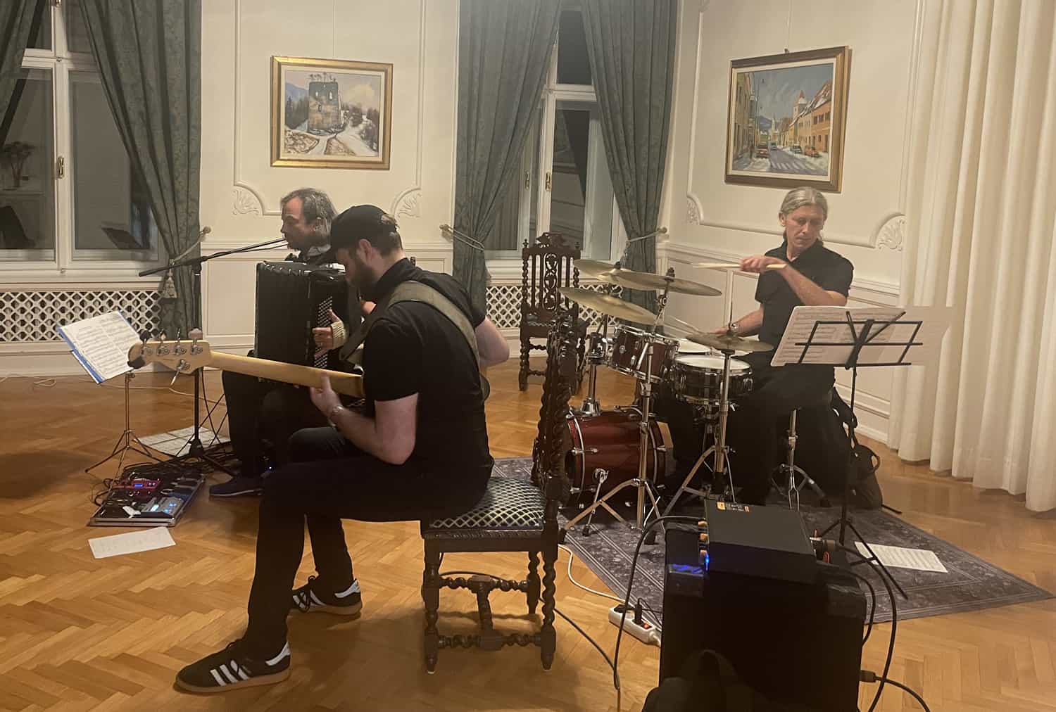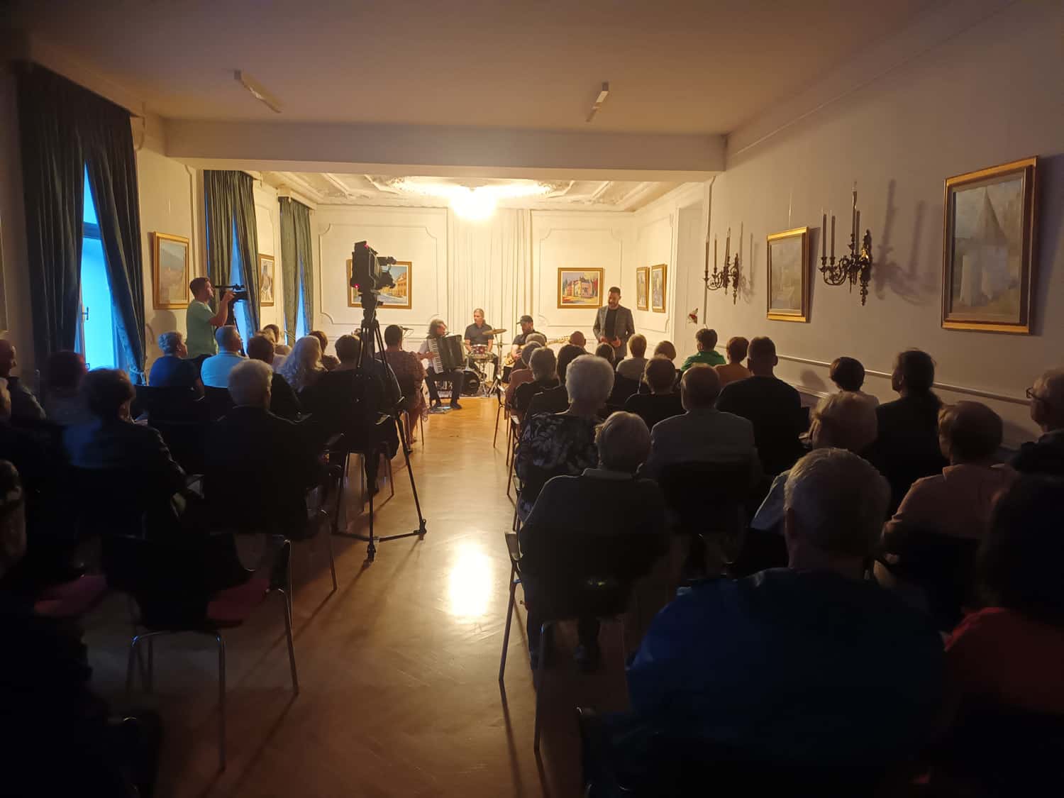 Marko Hatlak - harmonika je skupaj z Žigo Kožarjem – bobni in Erikom Čeboklim - bas, razvajal polno dvorano občinstva s svojo avtorsko glasbo in s priredbami klasične glasbe.
