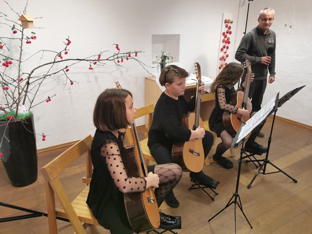 Za glasbeno popestritev dogodka je poskrbel kitarski trio v zasedbi Ema Prošt, Iva Plimon in Laura Petrovič. Dekleta se igranja na kitaro učijo pri prof. Poloni Blaznik na Glasbeni šoli Ravne na Koroškem-oddelek Dravograd. Razstava bo odprta v delovnem času Infopisarne ali po predhodnem dogovoru z Lotko tudi izven tega do 10. aprila.