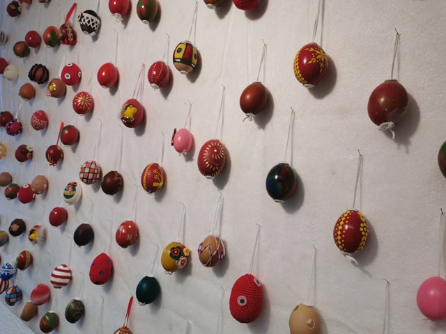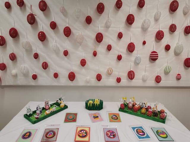 Tokrat je za razstavo pripravila zopet precej novih izdelkov, s svežimi zamislimi za krašenje pirhov in voščilnic. Na ogled pa je postavila tudi izbrane pirhe iz preteklih let, na katerih so posebej zanimivi vzorci, ki jih lahko tokrat pobliže občudujemo.