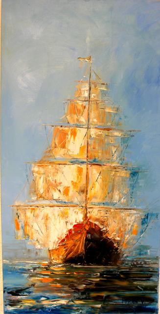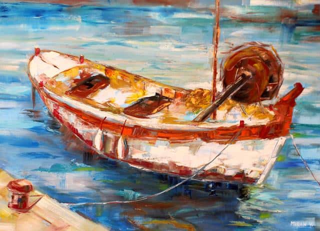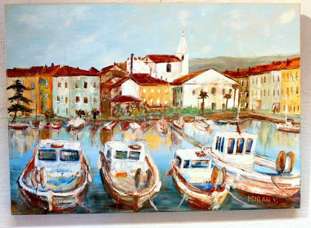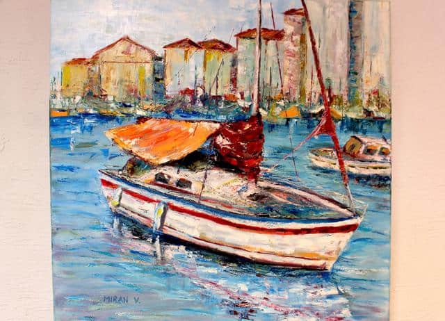 Mirko Vodopivec prihaja iz Sečovelj in zato ne preseneča naslov razstave V objemu morja. Mirko namreč razstavlja morske motive.