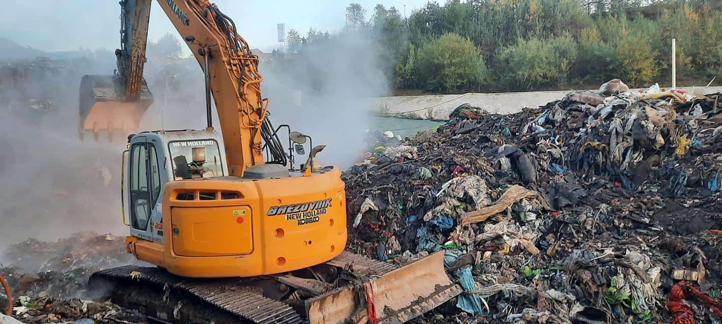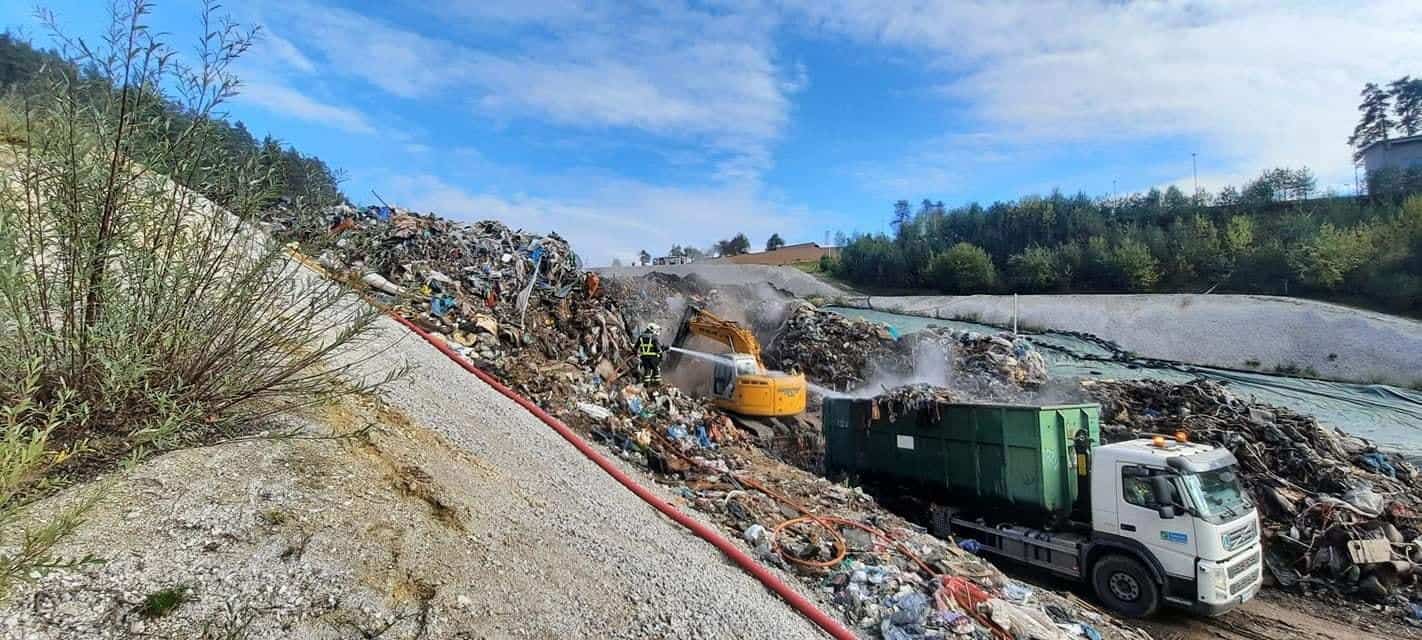 V nedeljo zjutraj so gasilci Prostovoljnega gasilskega društva Prevalje najprej pogasili manjši požar na odlagališču odpadkov, vse od takrat pa s pomočjo delavcev z gradbenimi stroji prekopavajo požarišče in ga zalivajo.