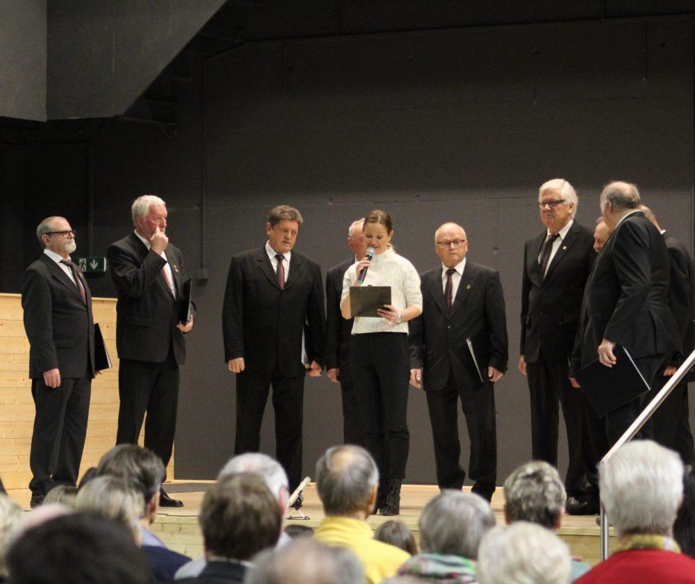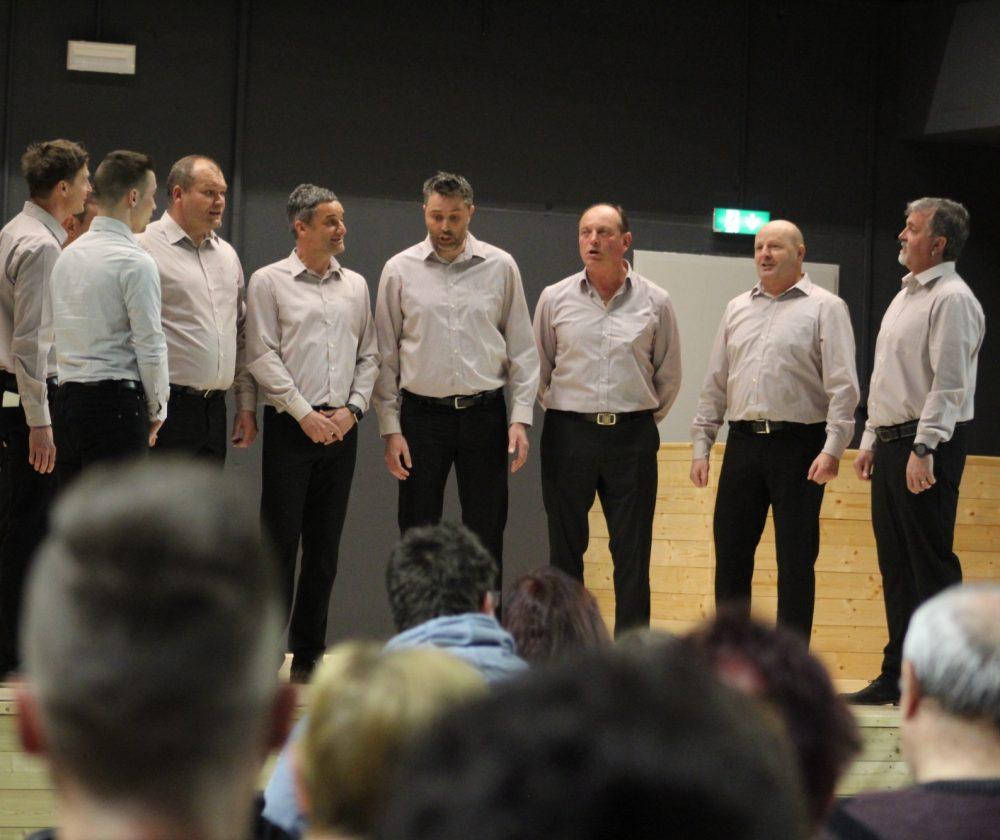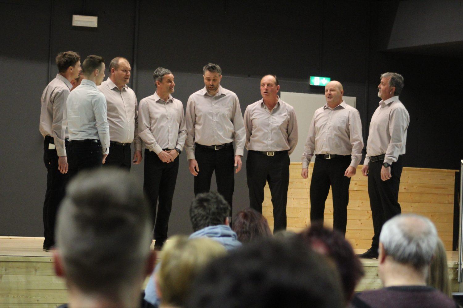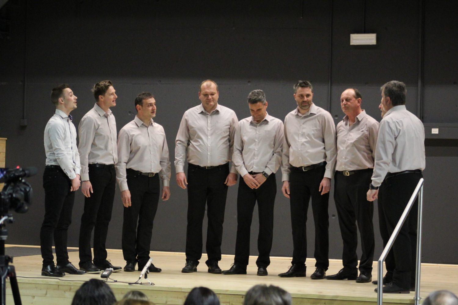 Na nocojšnjem koncertu bi moralo nastopiti sicer osem zasedb, vendar se jih je prireditve zaradi bolezni pri Mežikših knapih, udeležilo sedem. Skupno pa smo lahko prisluhnili preko sto pevcem.