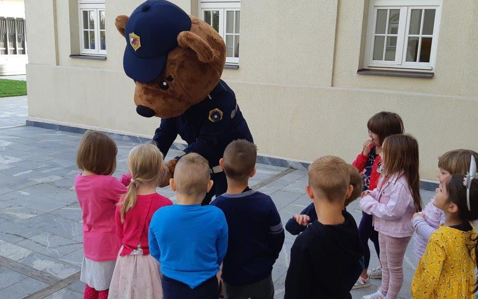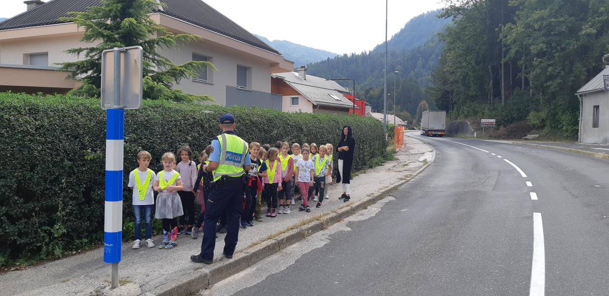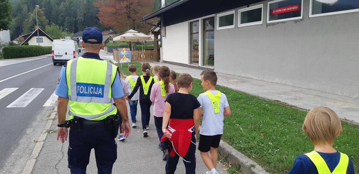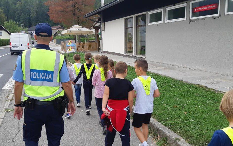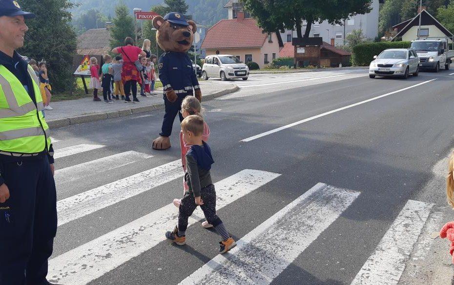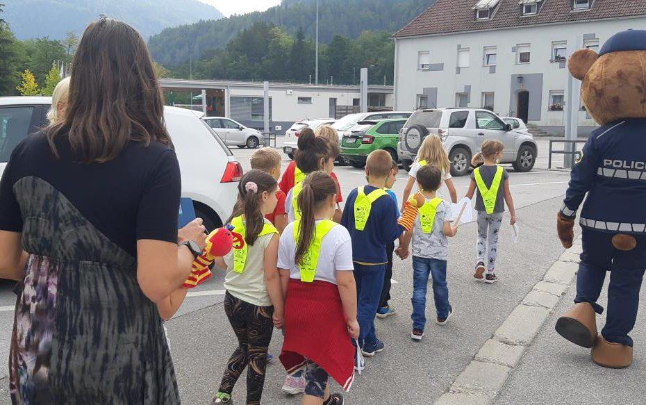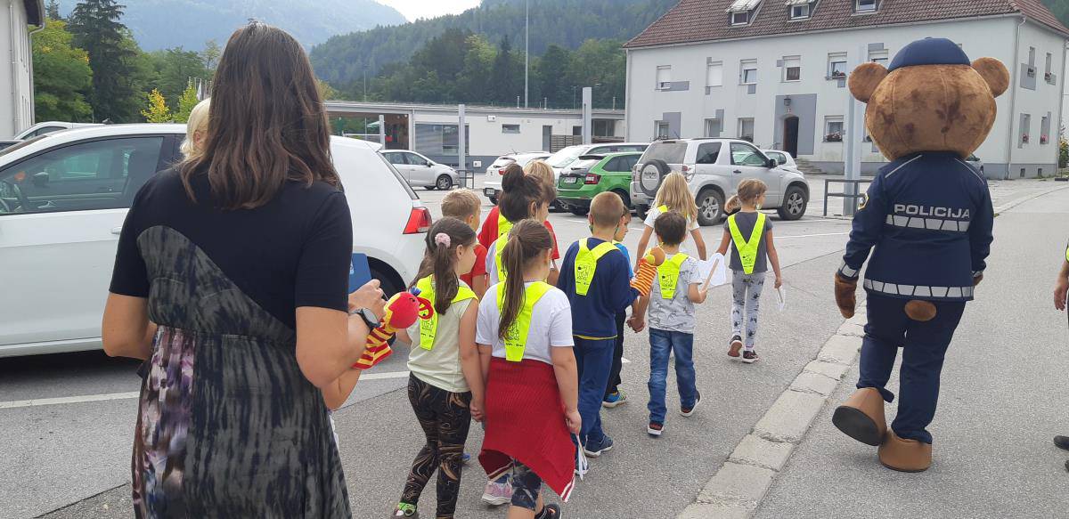 Sprehod je bil poučne narave, saj sta policist in policijska medvedka Pika otrokom ponazorila pravilno in predvsem varno gibanje po poteh ter prečkanje cest po Mežici.