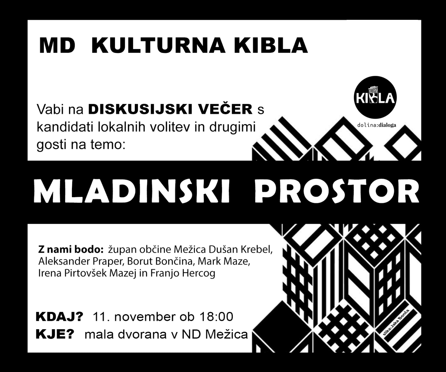 "Člani Mladinskega društva Kulturna kibla ugotavljamo, da je obseg tega problema v našem okolju velik. Diskusijski večer bomo izvedli v predvolilnem času lokalnih volitev, saj želimo nakazati tudi na vprašanje, ali smo mladi ''uslišani'' samo takrat kadar potekajo volitve. Pomembno se nam zdi, da se letošnji kandidati lokalnih volitev opredelijo kaj bodo konkretno naredili za mlade v občini Mežica in ali lahko pričakujemo ''ustanovitev'' mladinskega prostora v prihajajočem mandatu," so dodali.