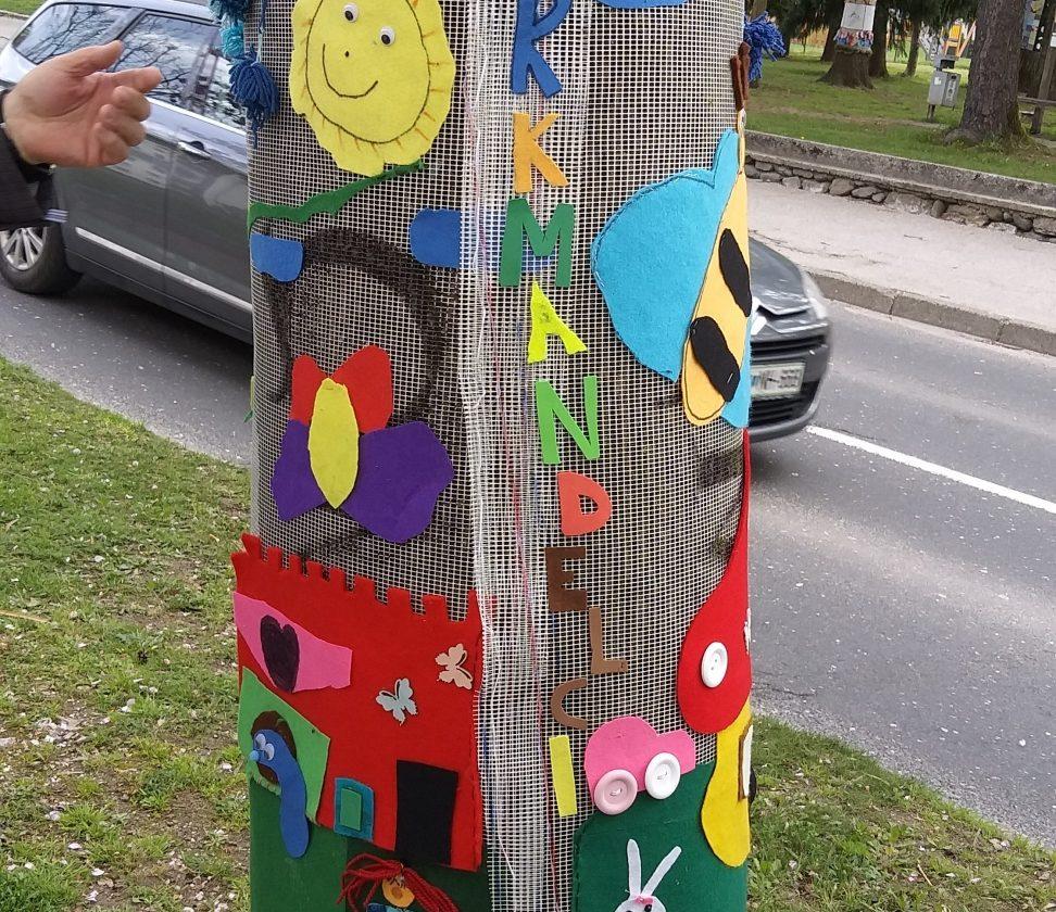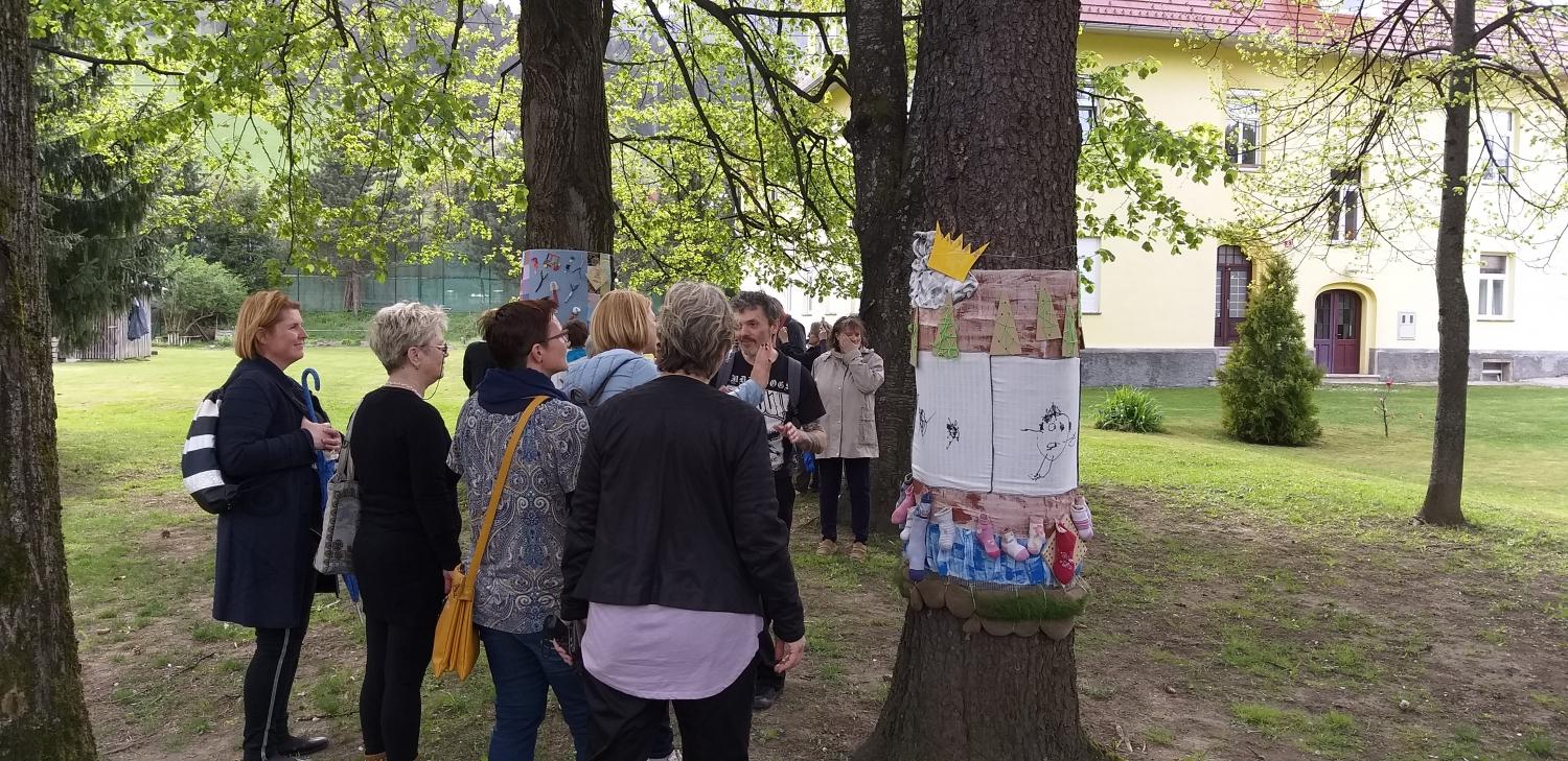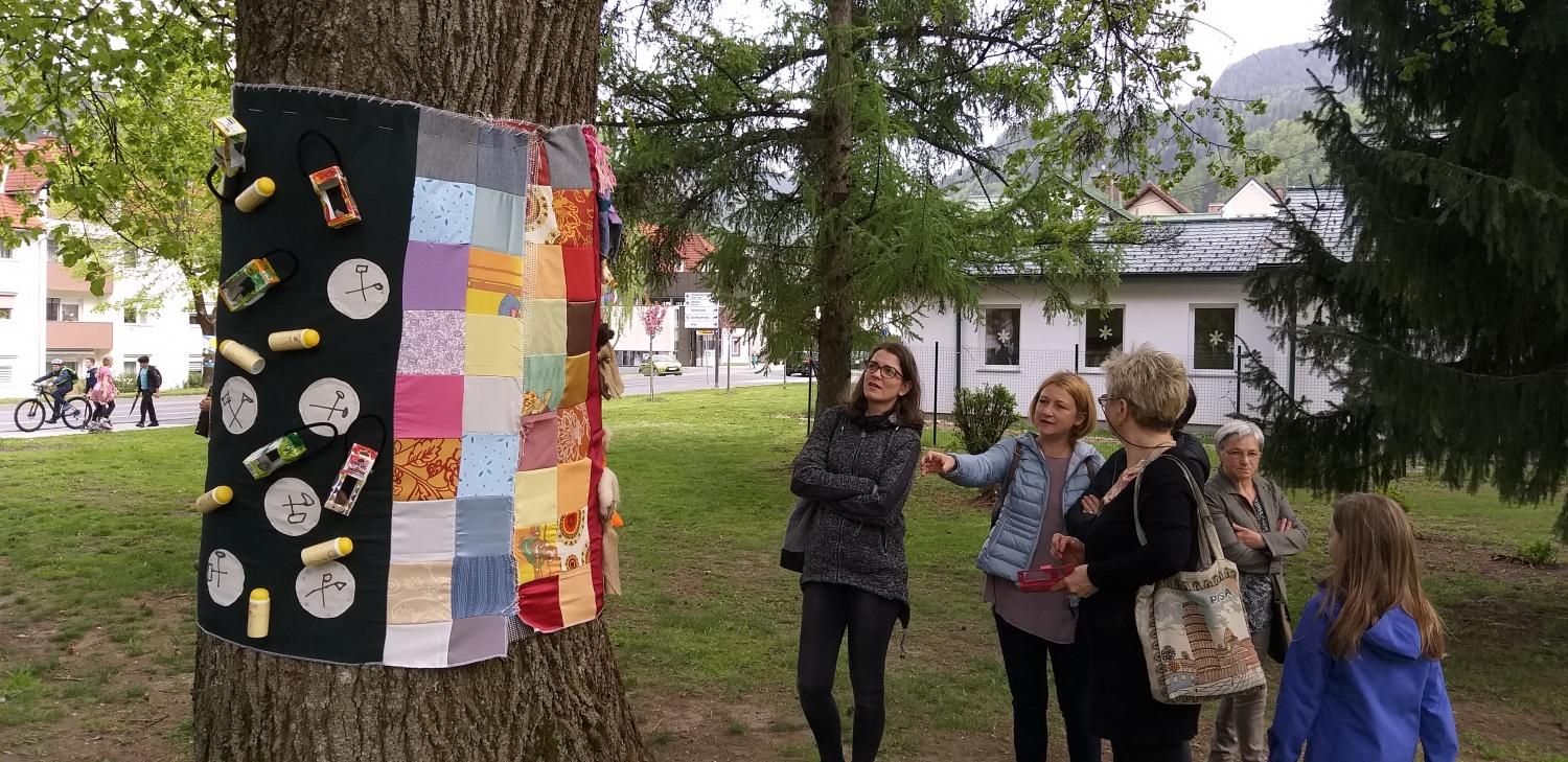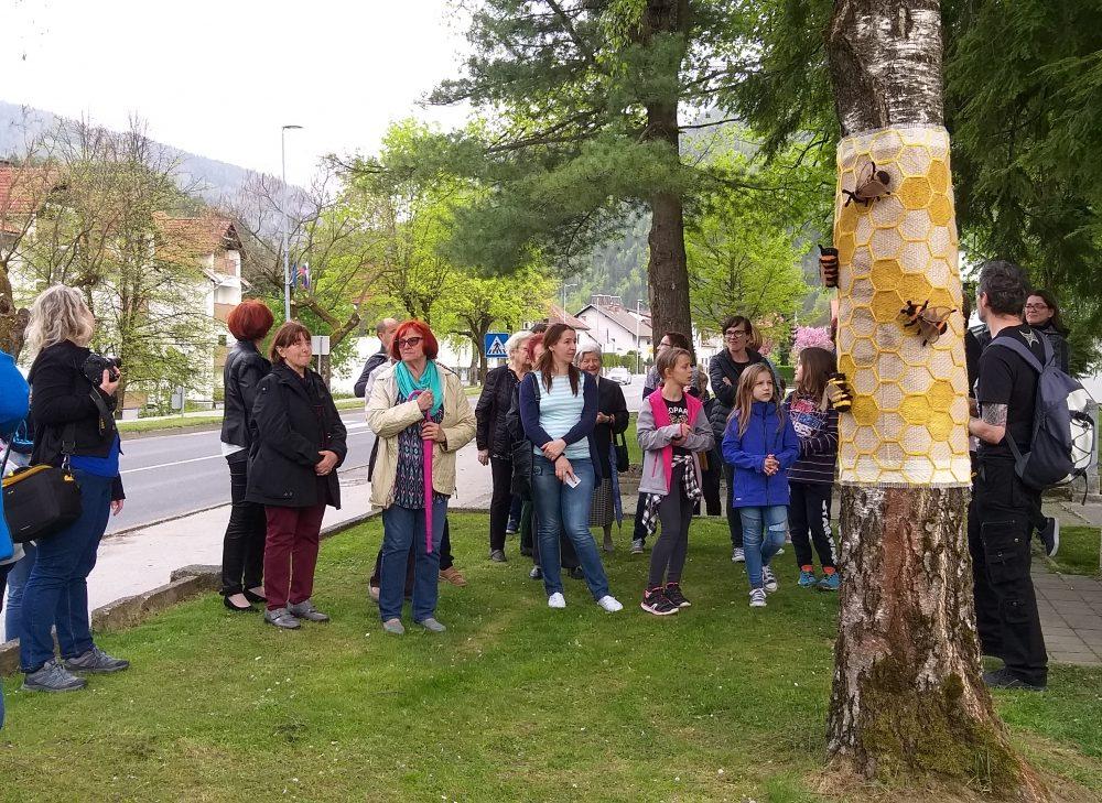 Barvita drevesa, mimo katerih nas je včeraj popeljal Peter Perutzzi in nam predstavil njihove zgodbe, so na ogled po poti med Občino Mežica, kjer je v občinski grb oblečeno eno drevo. Na promenadi od Merkatorja proti Zdravstvenemu domu so barvita 3 drevesa, eno je pri prodajalni Ostržek, pri OŠ Mežica pa so se učenci z mentorico Katjo Krejan potrudili in sami v barve odeli kar 3 drevesa. Najmlajši občani Mežice, otroci iz Vrtca Mežica, so okrasili dve drevesi, ki sta poleg še dveh na ogled v parku pred vilo, zgodbo »Barvite Mežice« pa zaključuje drevo preoblečeno v čebele, za katerega so obleko izdelale članice MCM.