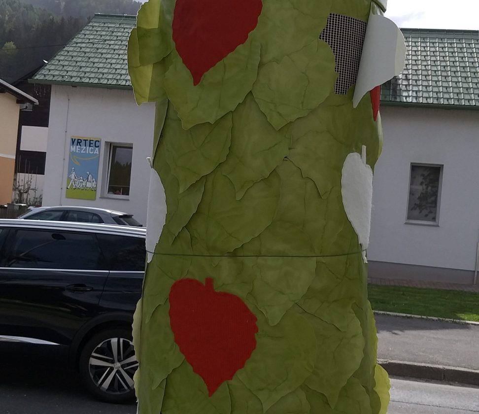V sklopu treh dreves na promenadi od Merkatorja proti Zdravstvenemu domu, je v spomladanske barve oblečeno drevo, ki je delo članic učne skupine slovenskega jezika, ki deluje v okviru MCM. Drevo ponazarja pomlad kot simbol preporoda in novega začetka, s čimer so se poistovetile tudi avtorice spomladanskega izdelka, ki so se v Mežico preselile pred kratkim in začele tukaj živeti na novo.