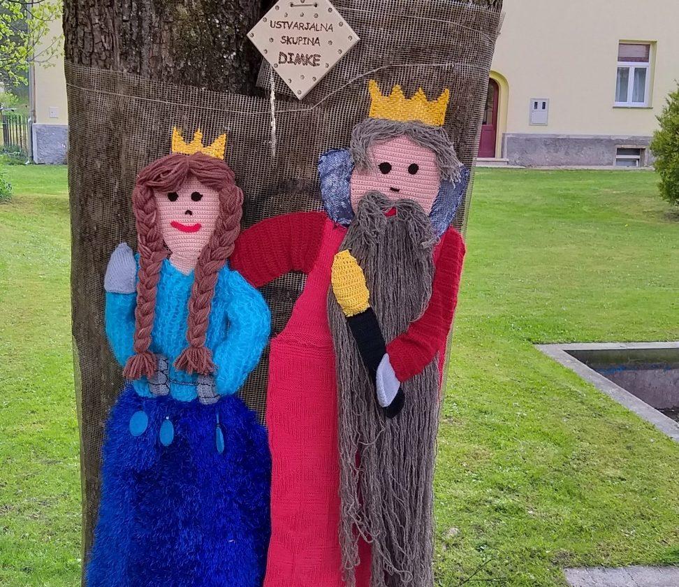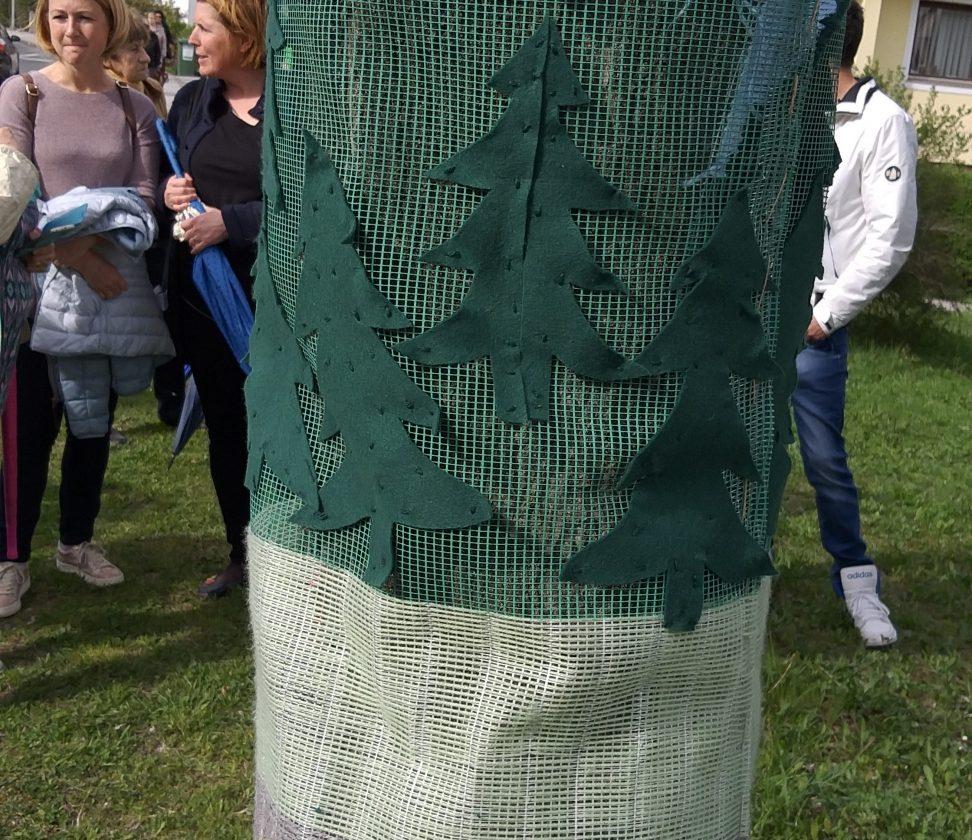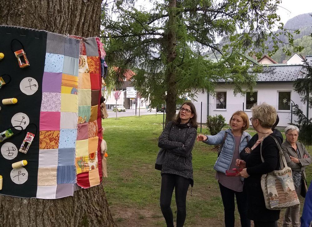 Prvo drevo je odeto v grb Občine Mežica, ki so ga izdelale Tatjana, Mira in Alojzija iz MCM