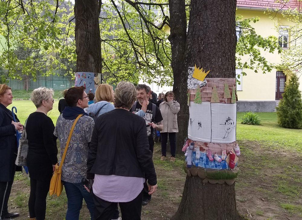 V parku pred vilo sta med drugim na ogled tudi dve drevesi, za kateri so oblačili izdelali otroci iz Vrtca Mežica, ob pomoči staršev in vzgojiteljic. Najmlajši, ki sodijo v starostno skupino od enega do treh let, so iz blaga izdelali domiselno razglednico Mežice, pri kateri so uporabili tudi nogavice. na njej pa najdemo Mežo, Peco s Kraljem Matjažem, zeleno naravo ... Otroci iz druge starostne skupine, stari od tri do šest let, pa so na izviren način na drevesu ponazorili stare igre in rudarstvo.