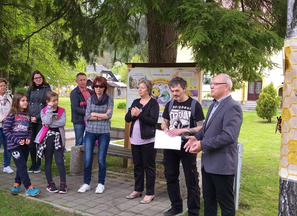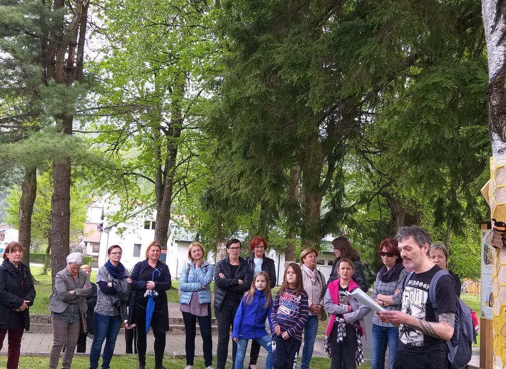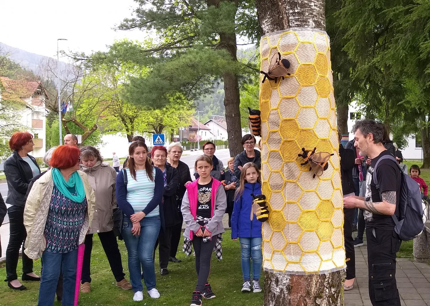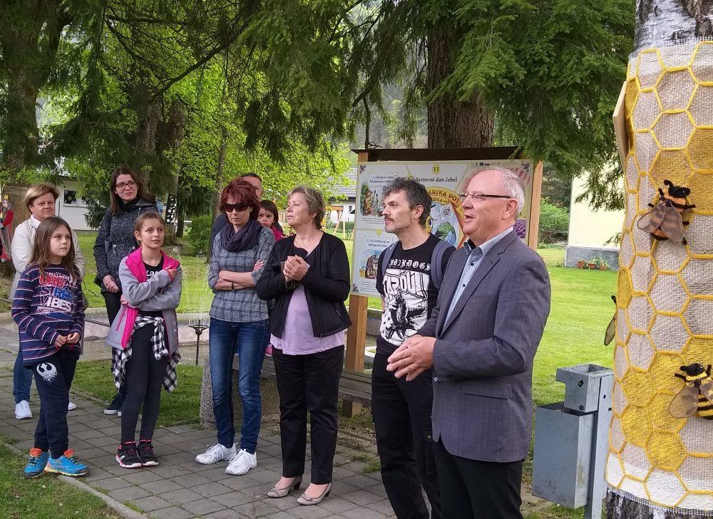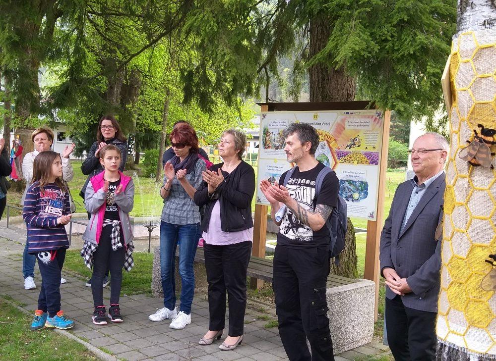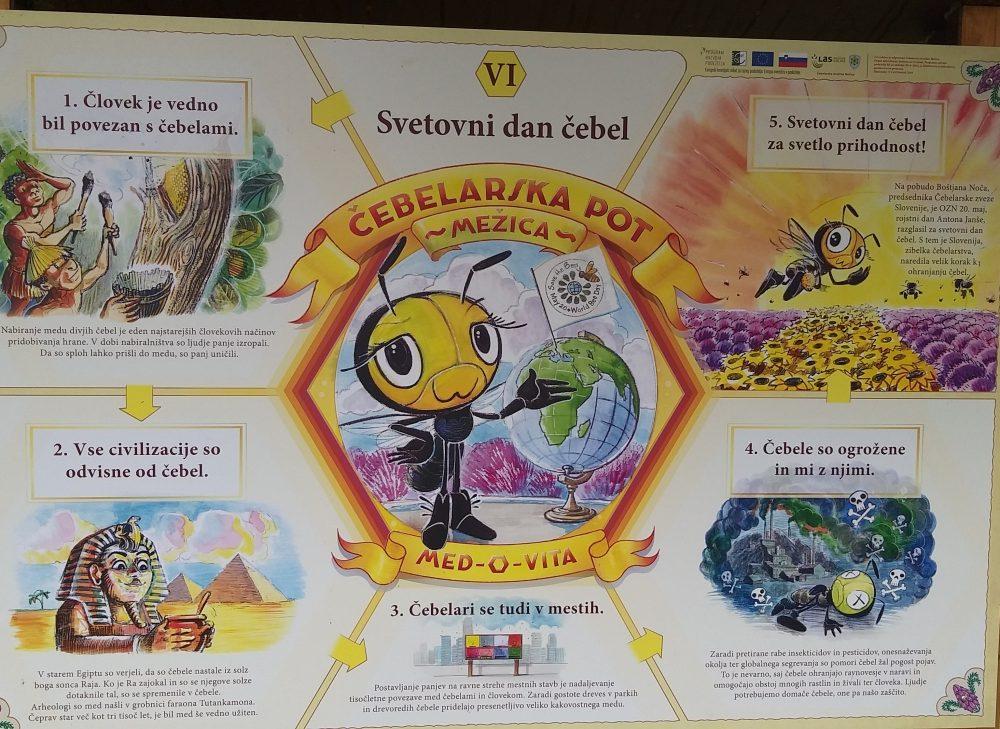 Krog smo sklenili s postankom pri drevesu, ki ponazarja čebele in učno čebelarsko pot, ki so jo v Občini Mežica uredili konec lanskega leta, in sicer v okviru projekta »MED-O-VITA«. Krožna učna čebelarska pot, ki je urejena s tablami, katerih avtor je znan slovenski risar Korošec Ciril Horjak, prikazuje pomen čebel in čebelarstva ter zgodovino čebelarstva v Mežiški dolini, s poudarkom na varstvu naravne, kulturne in zgodovinske dediščine.