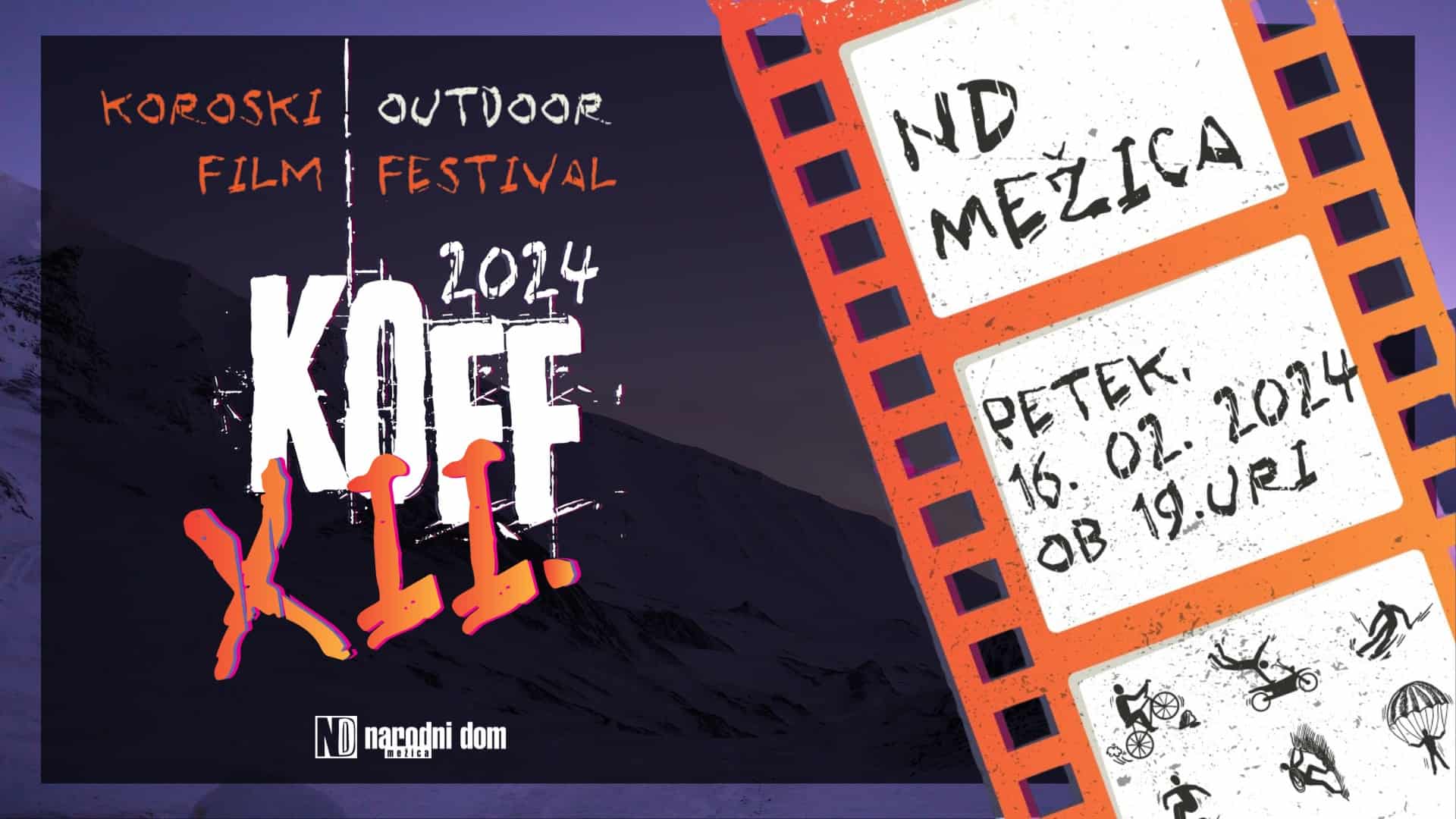 V petek, 16. februarja 2024, bo potekal 12. KOFF – Koroški outdoor film festival, ki ga ne gre zamuditi. Organizatorji dogodka so Narodni dom Mežica in ekipa Koff-a.