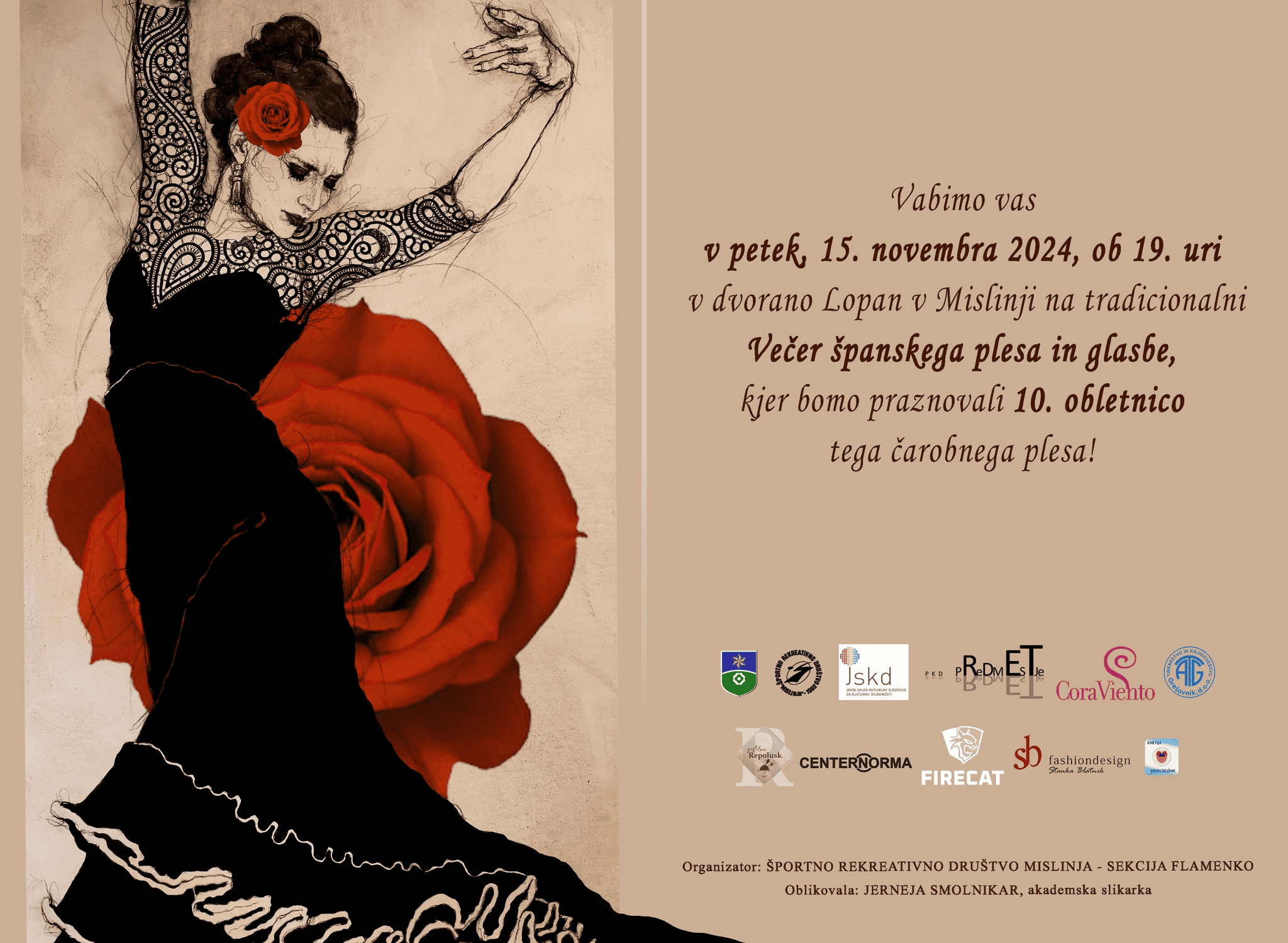 V Mislinji bo letos ponovno zaživela tradicija španskega plesa in glasbe, saj bo ŠRD Mislinja - Sekcija FLAMENKO pripravila svoj že tradicionalni Večer španskega plesa in glasbe, ki ga prirejajo od leta 2017. Letos bo dogodek še posebej poseben, saj plesna skupina obeležuje 10. obletnico svojega delovanja.