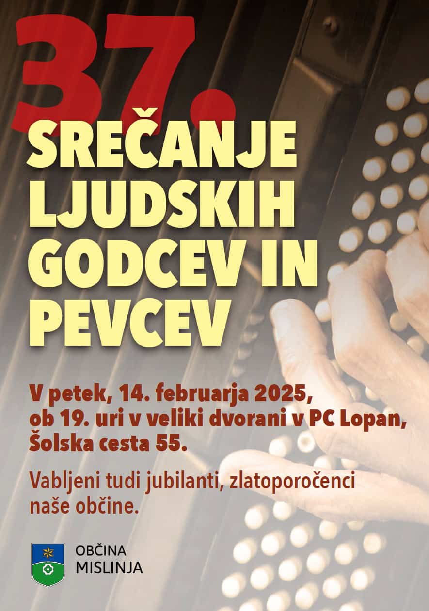 Občina Mislinja vas vabi na 37. srečanje ljudkih godcev in pevcev. Srečanje bo jutri, 14. februarja, s pričetkom ob 19. uri. Ob tej priložnosti bodo ob valentinovem v veliki dvorani Lopan Mislinja poskrbeli za lepo vzdušje za vse, ki se jim bodo pridružili.